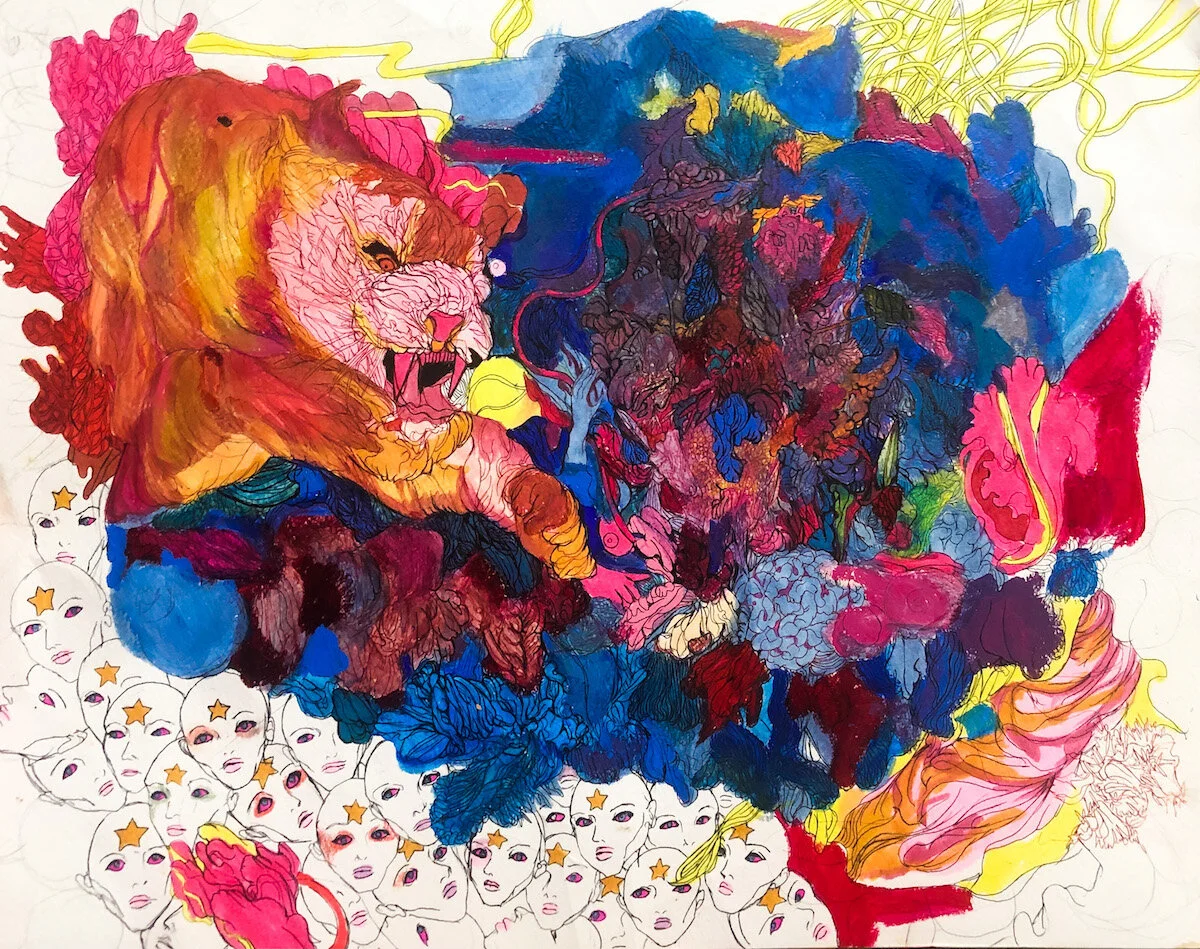 My subject matter is about the innermost human feelings. My illustration tries to depict the real forms of people in society. I mix flowers, human bodies, and faces as motifs to express human feelings such as sadness, anxiety, fear, joy, and love. Like Hokusai, the famous Japanese artist from the 18th century, I started with landscape illustration initially. Later, I began to describe people’s feelings like how I described landscape. Although many Japanese today are not deeply religious, I grew up in a Christian family. I have been fascinated by the masterpieces of European paintings, many of them depicting Christian themes, such as the works of Michelangelo and Leonard de Vinci. I try to draw my interpretation of human feelings within the Bible verses but under a contemporary interpretation. As an example, one of my paintings that have won a prize in Japan, “Passion”, is my expression of the lyrical poems in the Song of Solomon.