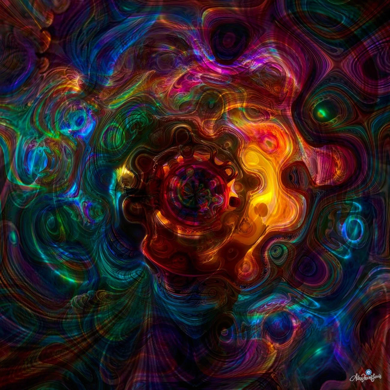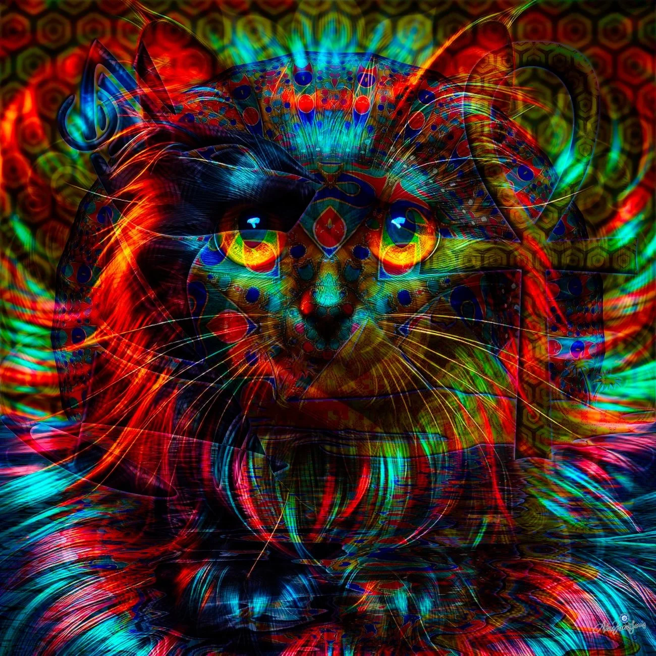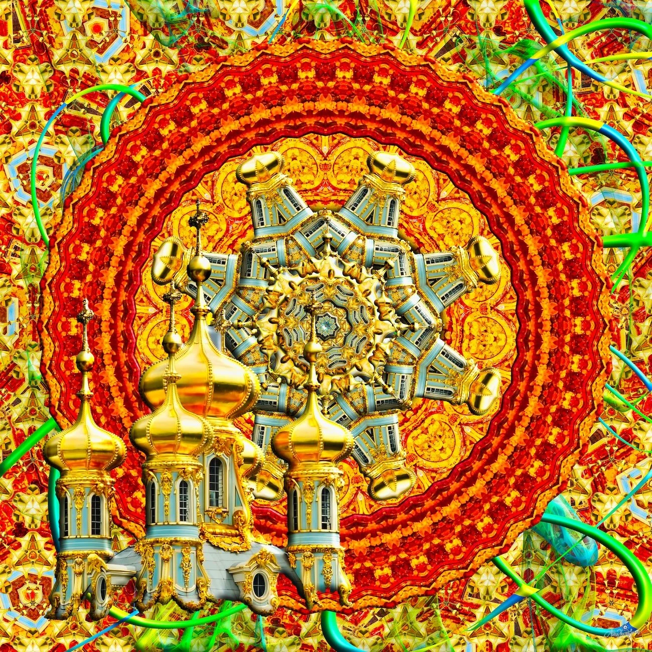 Alex, your work seamlessly integrates sacred geometry, vibrant colors and numerology with the rich visual heritage of the places you have visited. Could you elaborate on the intricate process you go through when creating a piece that fuses these various elements? Specifically, how do you decide which cultural motifs, geometric patterns, and color schemes to incorporate from each location, and what role does intuition play in this creative process?