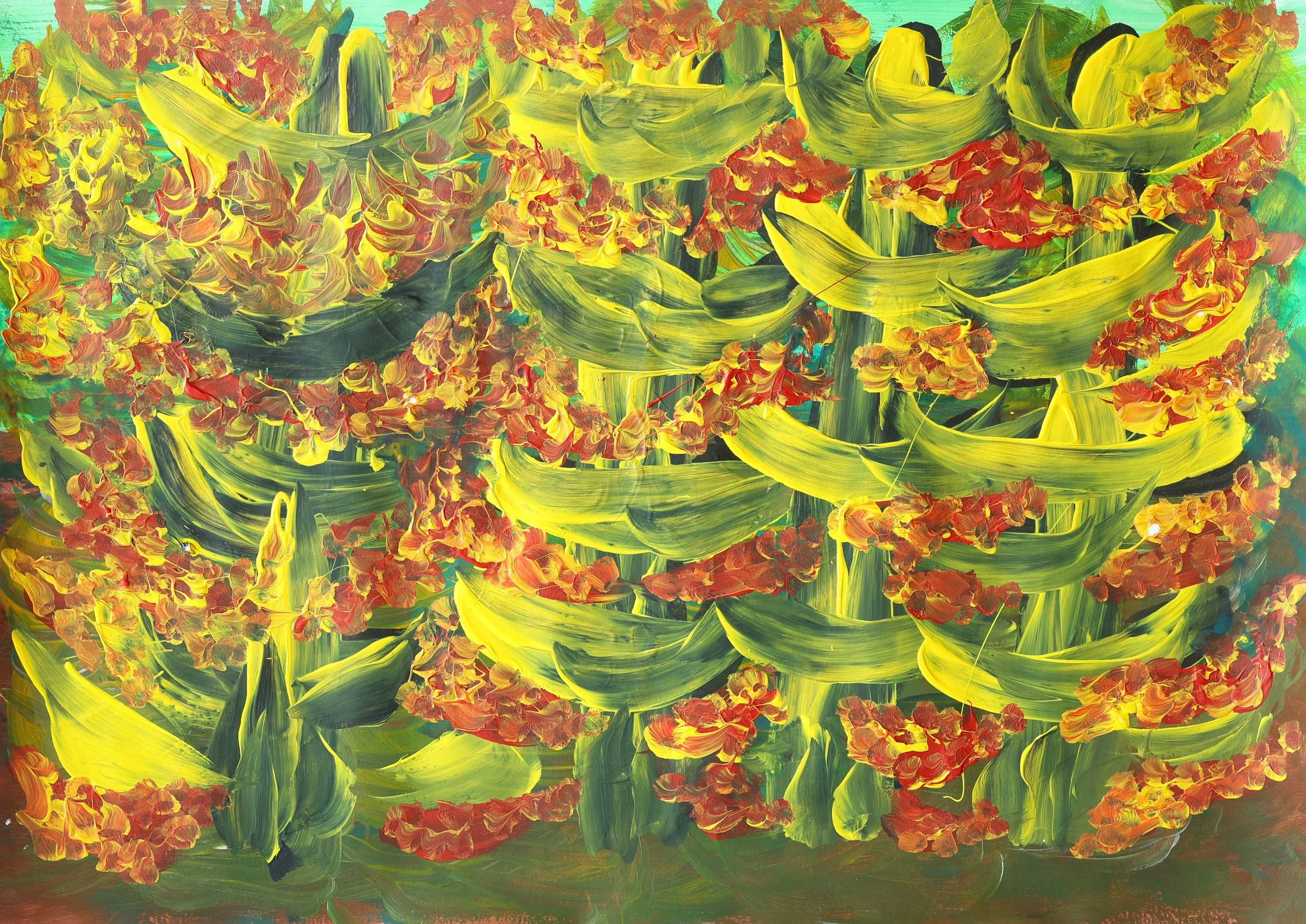"Plant world", 2025, acrylic and paper, 64x44 cm.