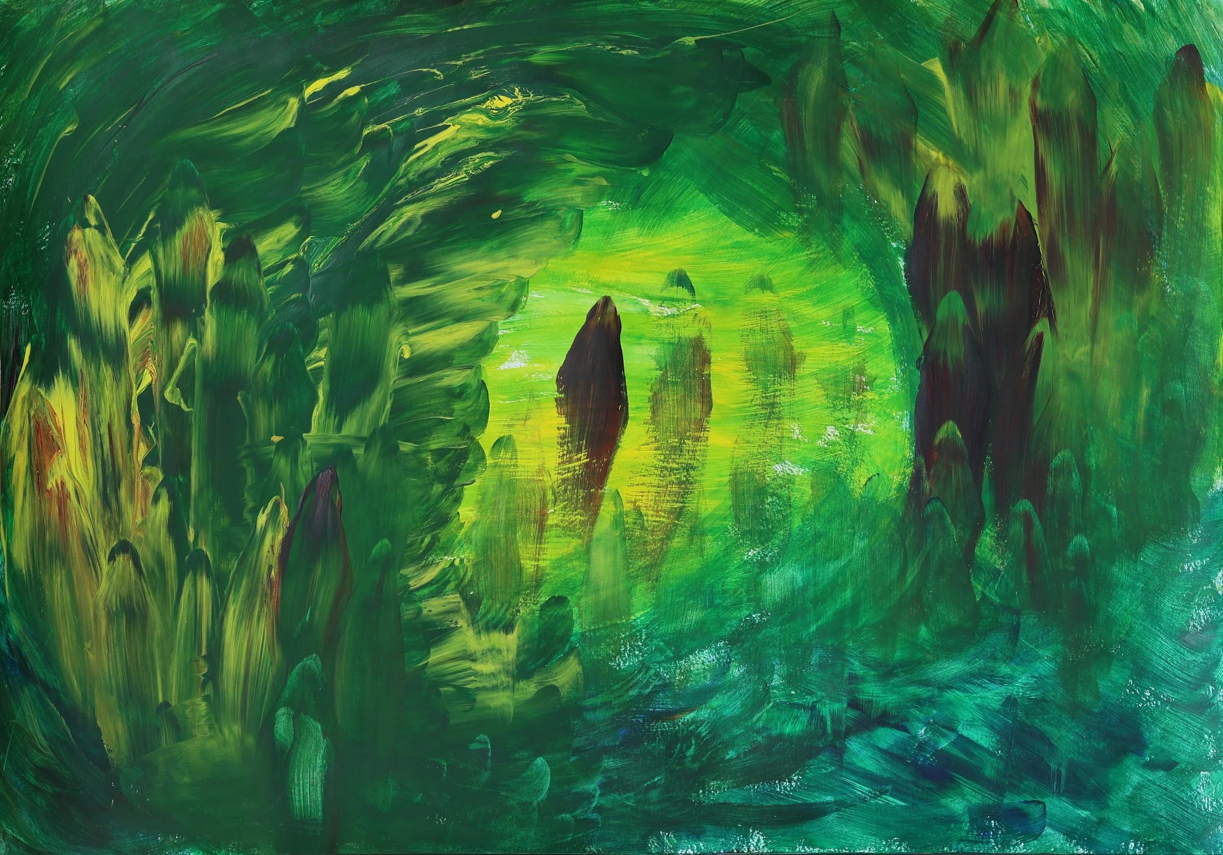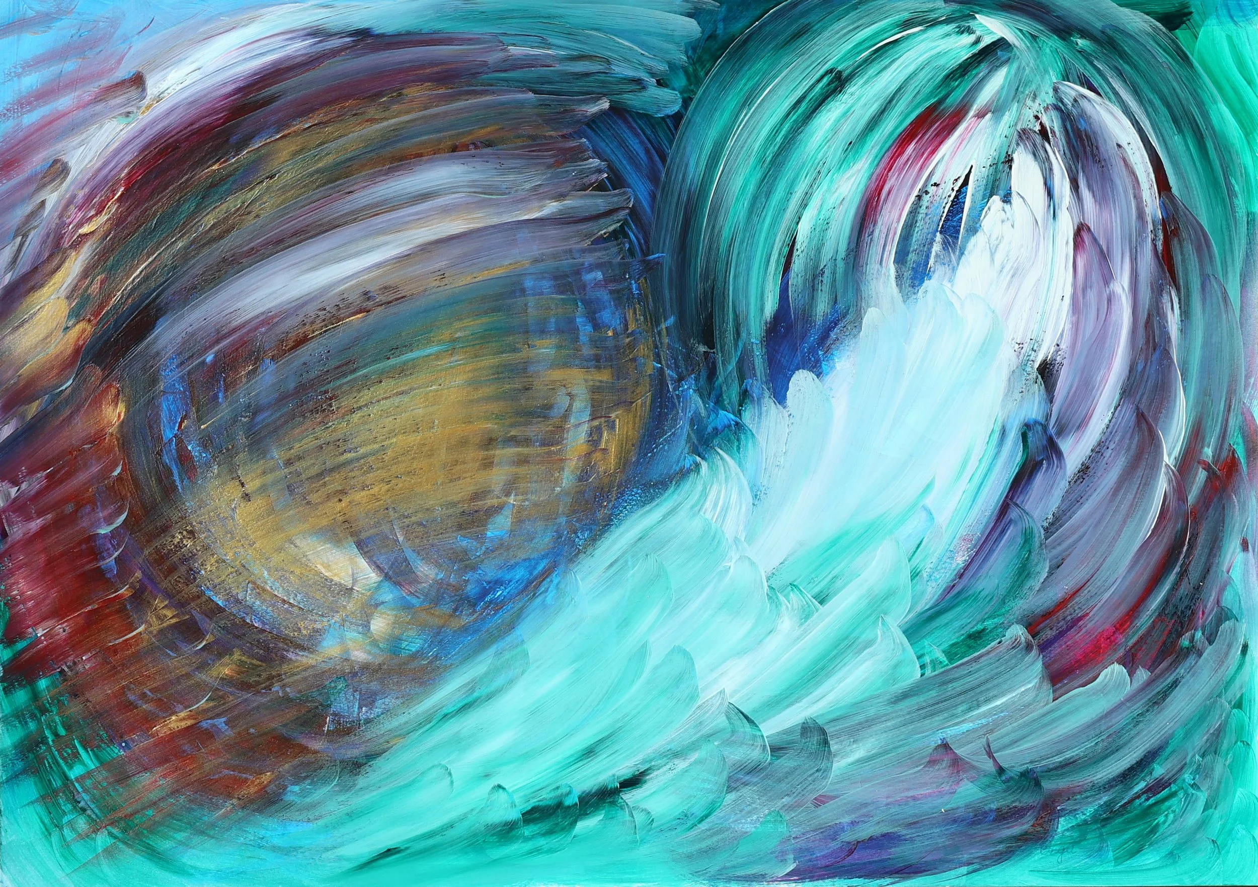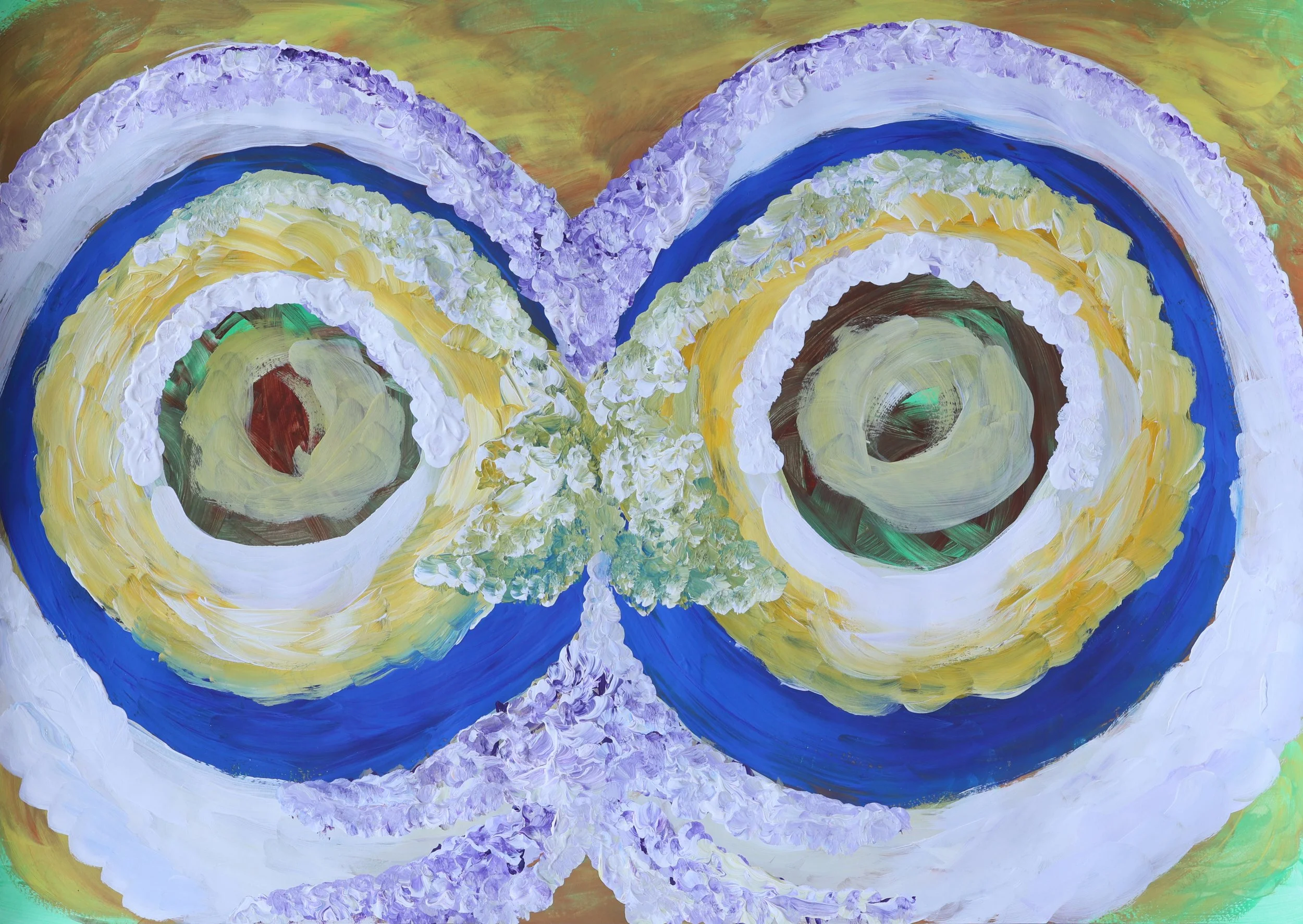 My paintings are an open dialogue with the world. When physical and abstract art coexist harmoniously. The motifs are symbolic in nature and open to various interpretations. They mostly touch on human life, its feelings, its essence on this earth. I paint without looking, I simply guide the brush across a sheet of paper, following my feeling, without thought.