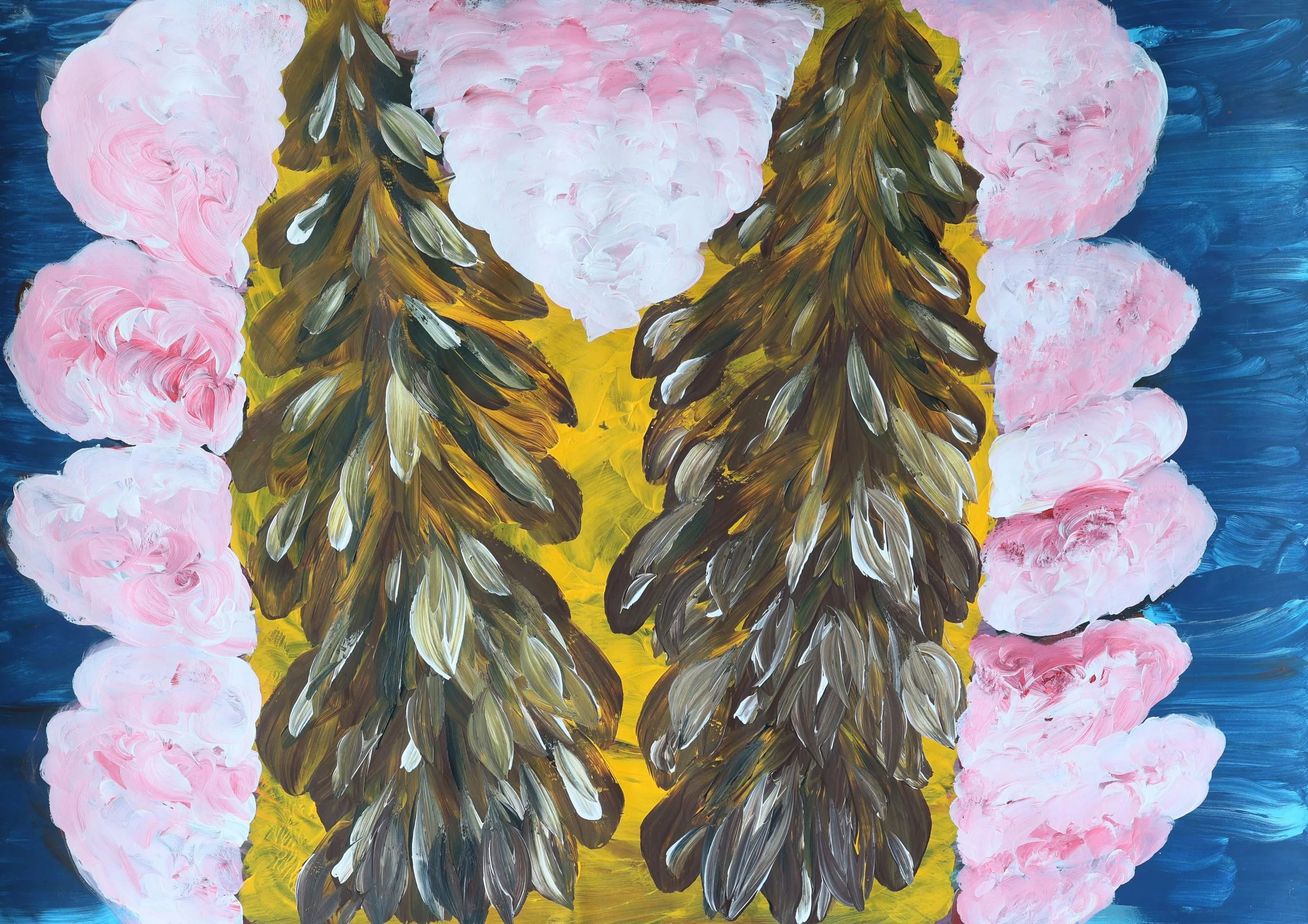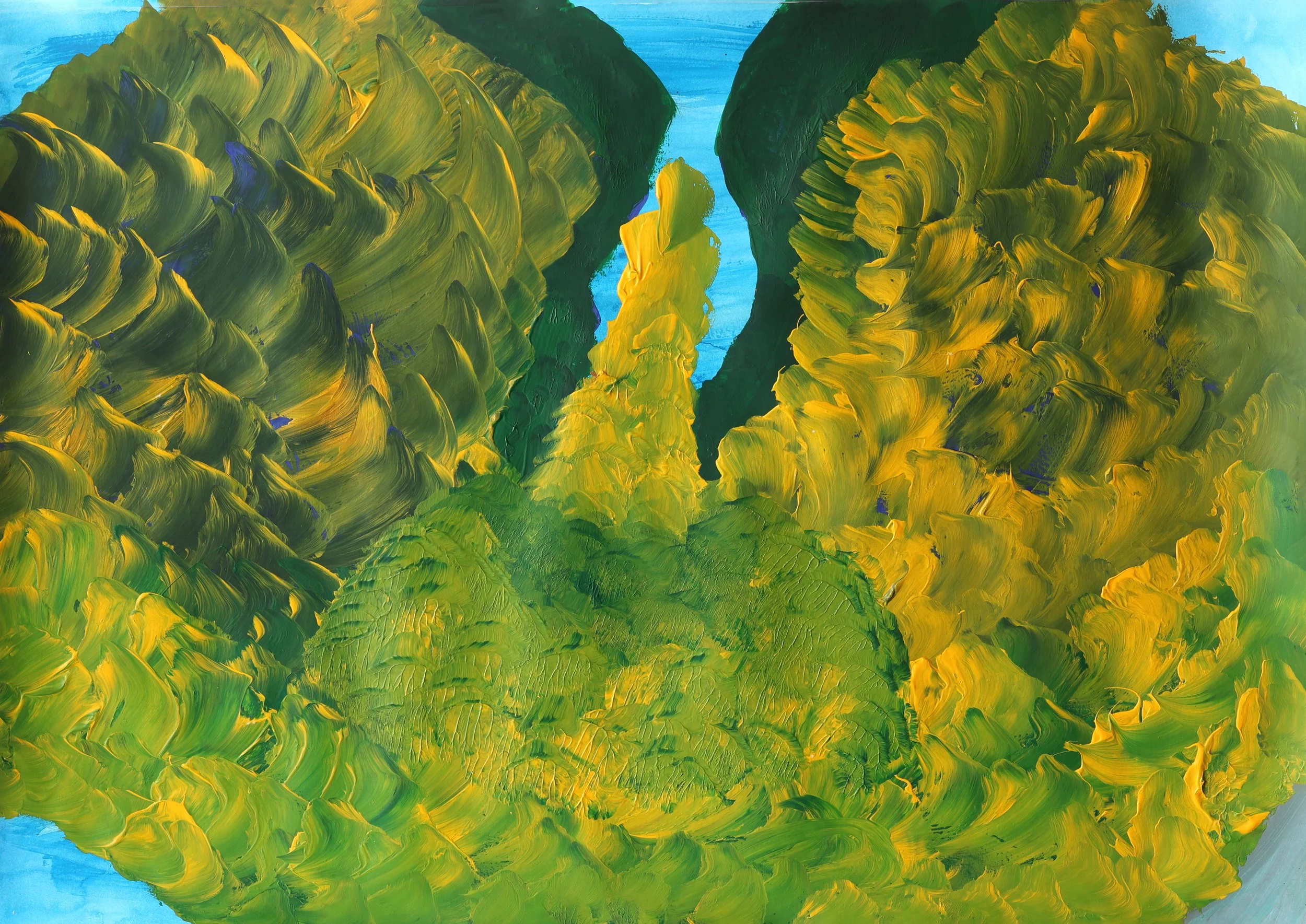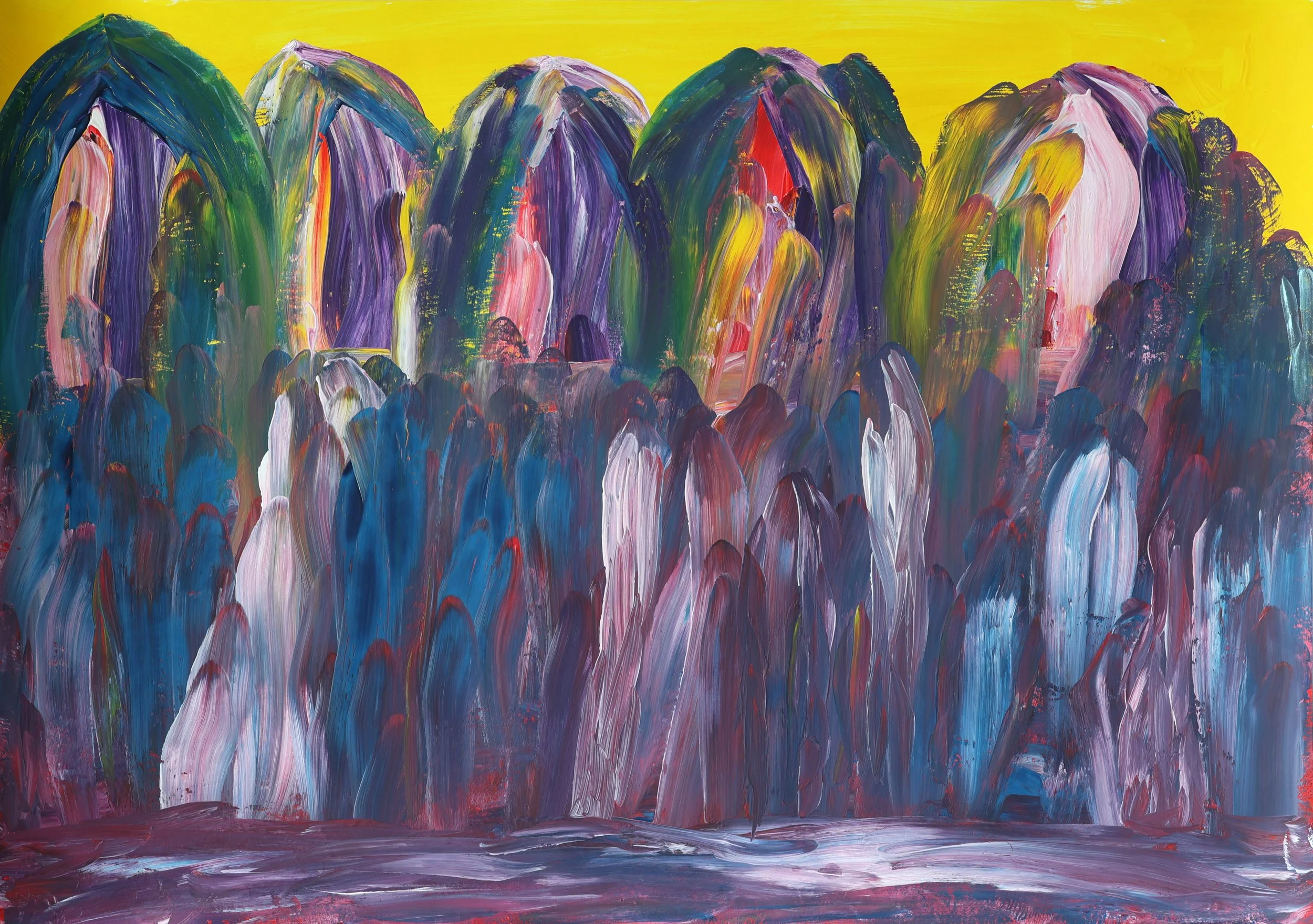 "Faith in a bright future for the earth", 2025, acrylic and paper, 64x44 cm.