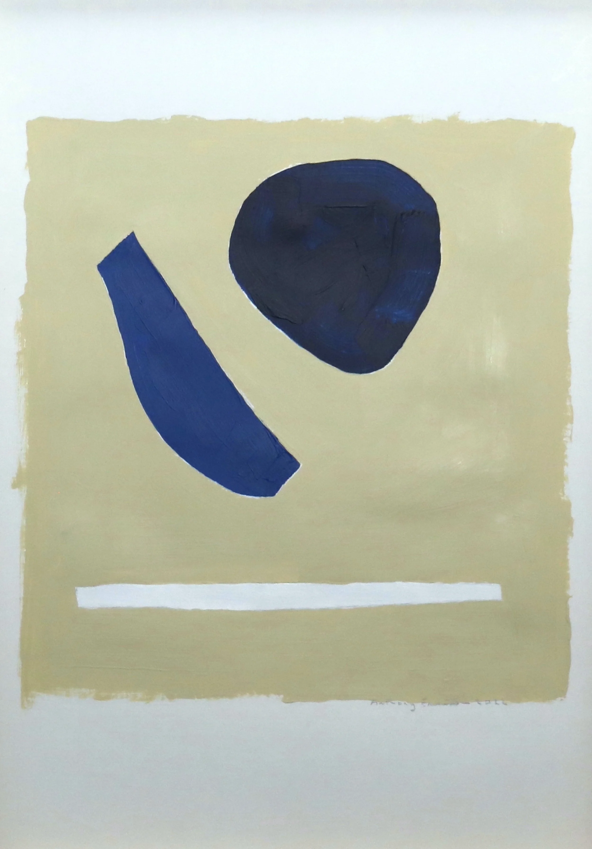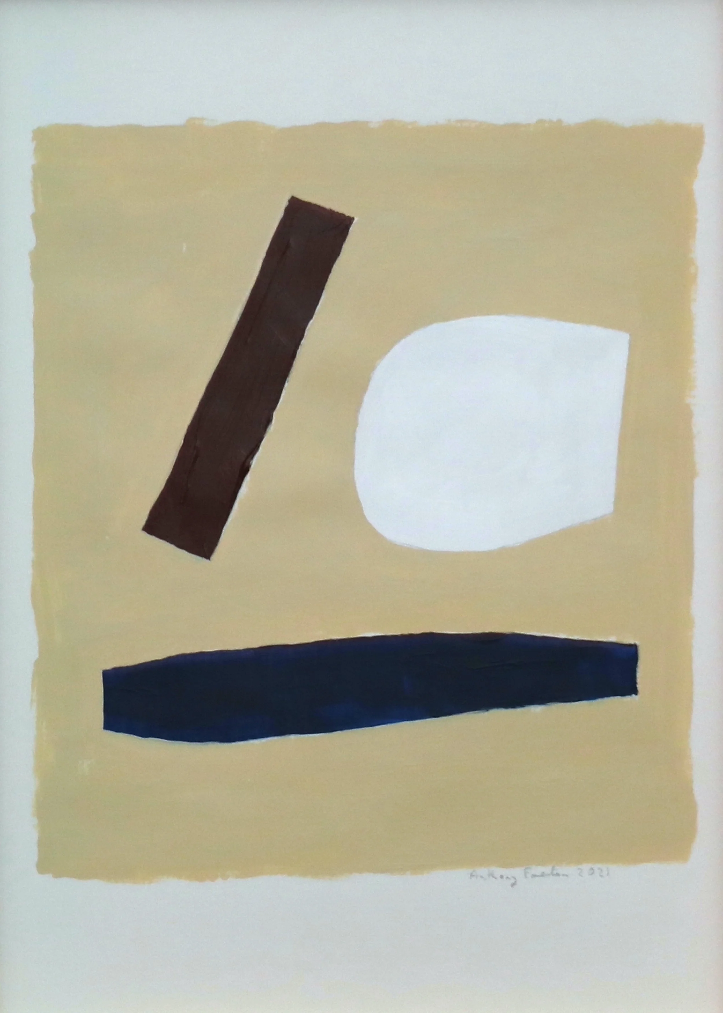 Anthony Emerton’s recent abstract paintings announce themselves quietly. They do not seek attention through spectacle, scale, or narrative excess. Instead, they establish a field of disciplined presence, one in which form, color, and interval operate with the calm authority of something thought through, lived with, and finally distilled. The works produced from 2021 to the present mark not a rupture but a crystallization. They are the outcome of a long artistic life shaped by sculpture, performance, illness, withdrawal, and return. What emerges in these small acrylics on paper is not reduction for its own sake, but an ethical position. The paintings insist that meaning is not generated by accumulation, but by care, repetition, and the patient negotiation of limits.