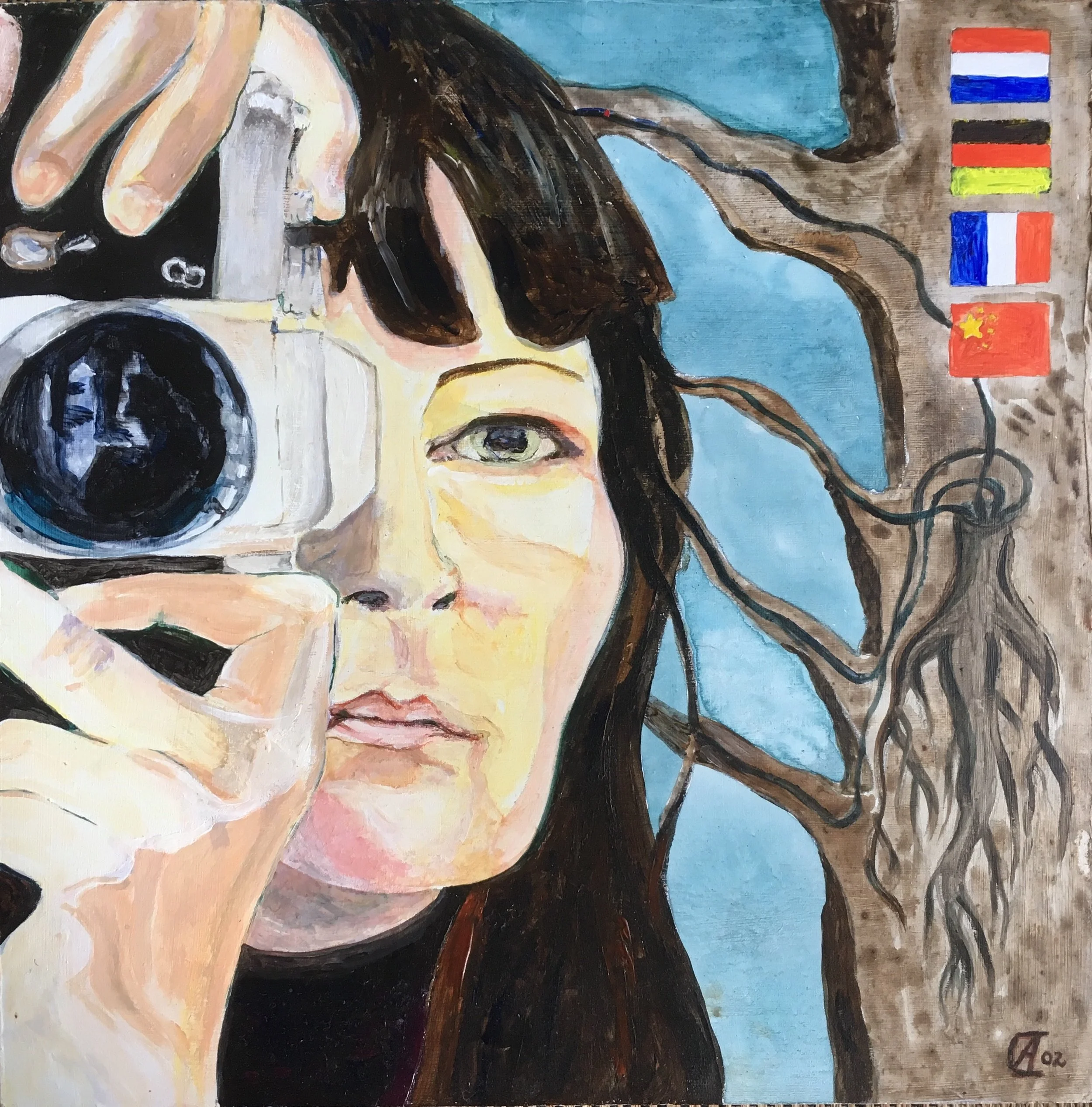 Selfportait/Roots 2008 oilpaint on wood 30 x 30 cm.