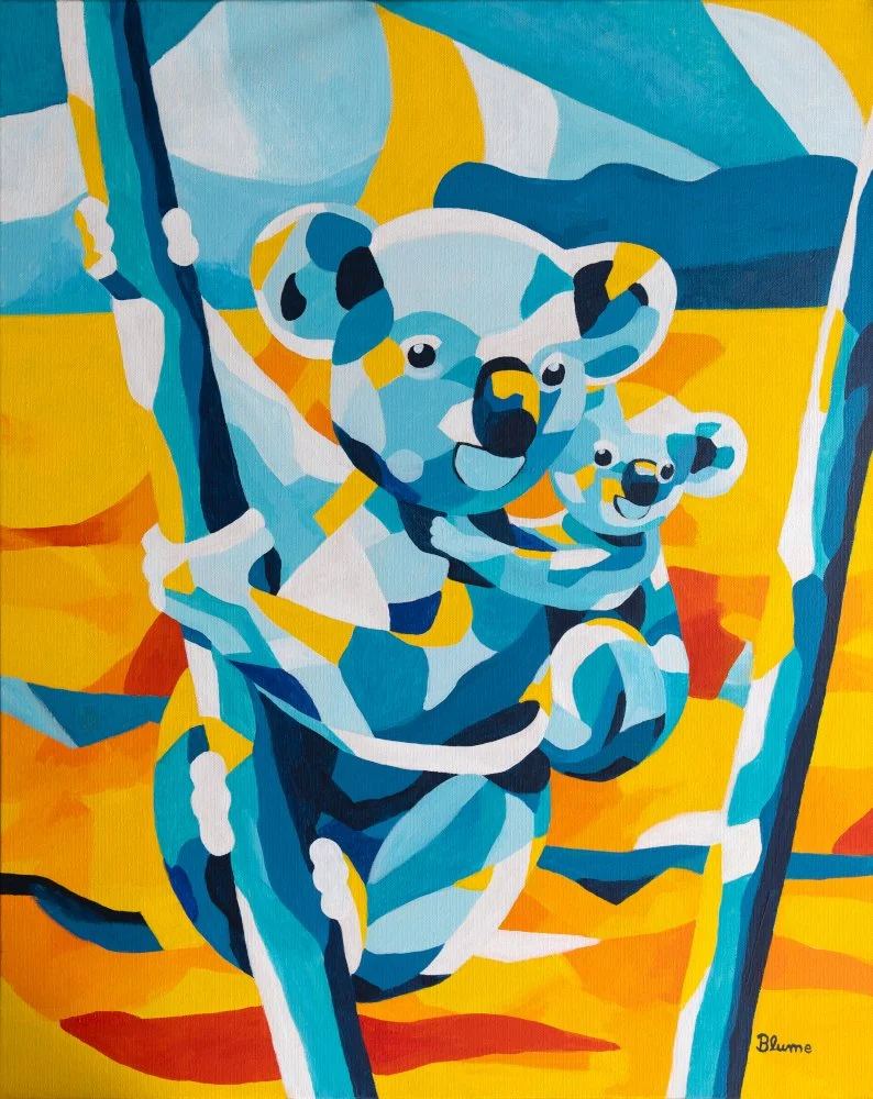 Koala with Baby, 2017. Acrylic on canvas, 100 x 80 cm.