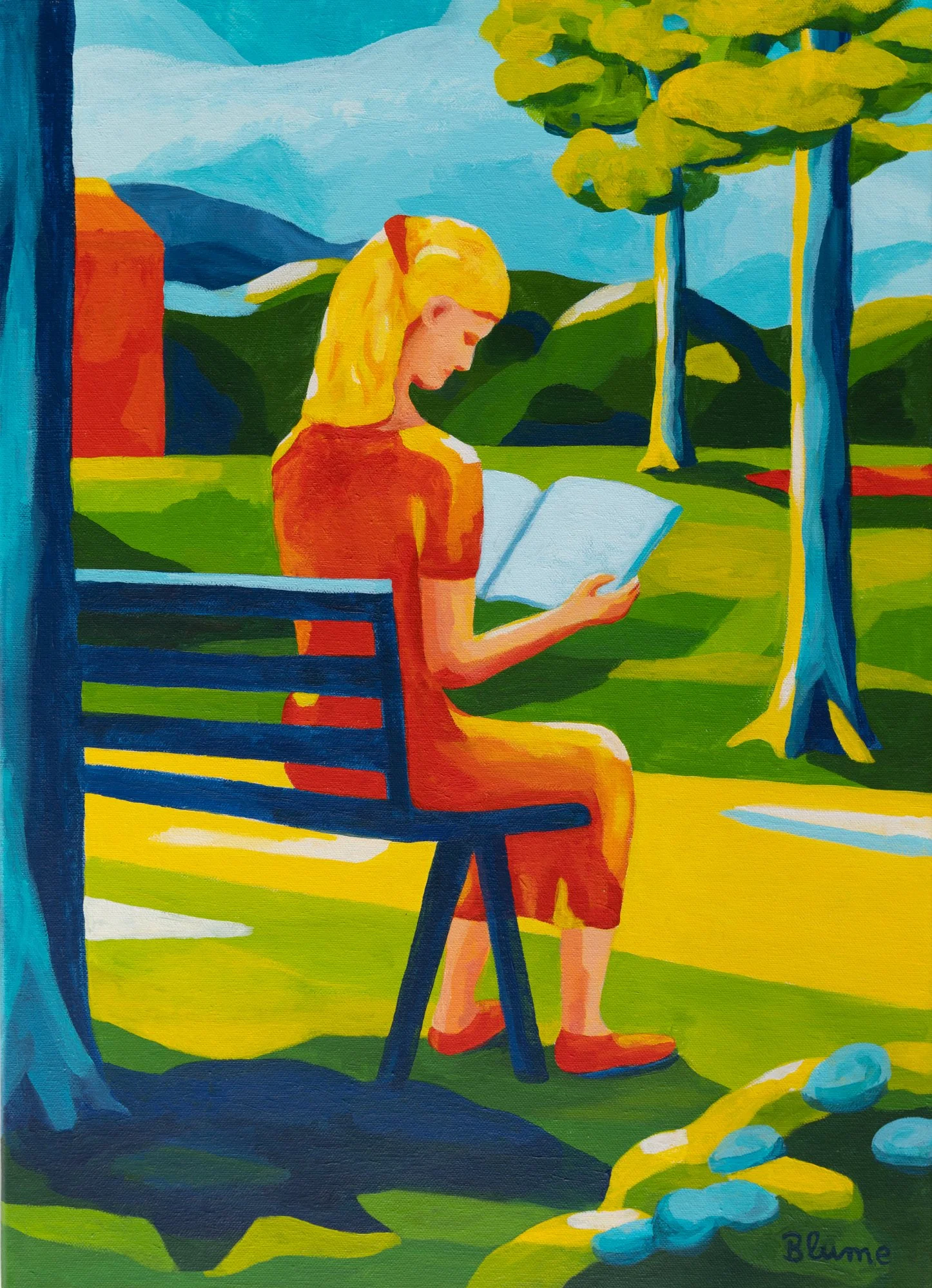 Reading Woman in a Park, 2017. Acrylic on canvas, 70 cm x 50 cm.