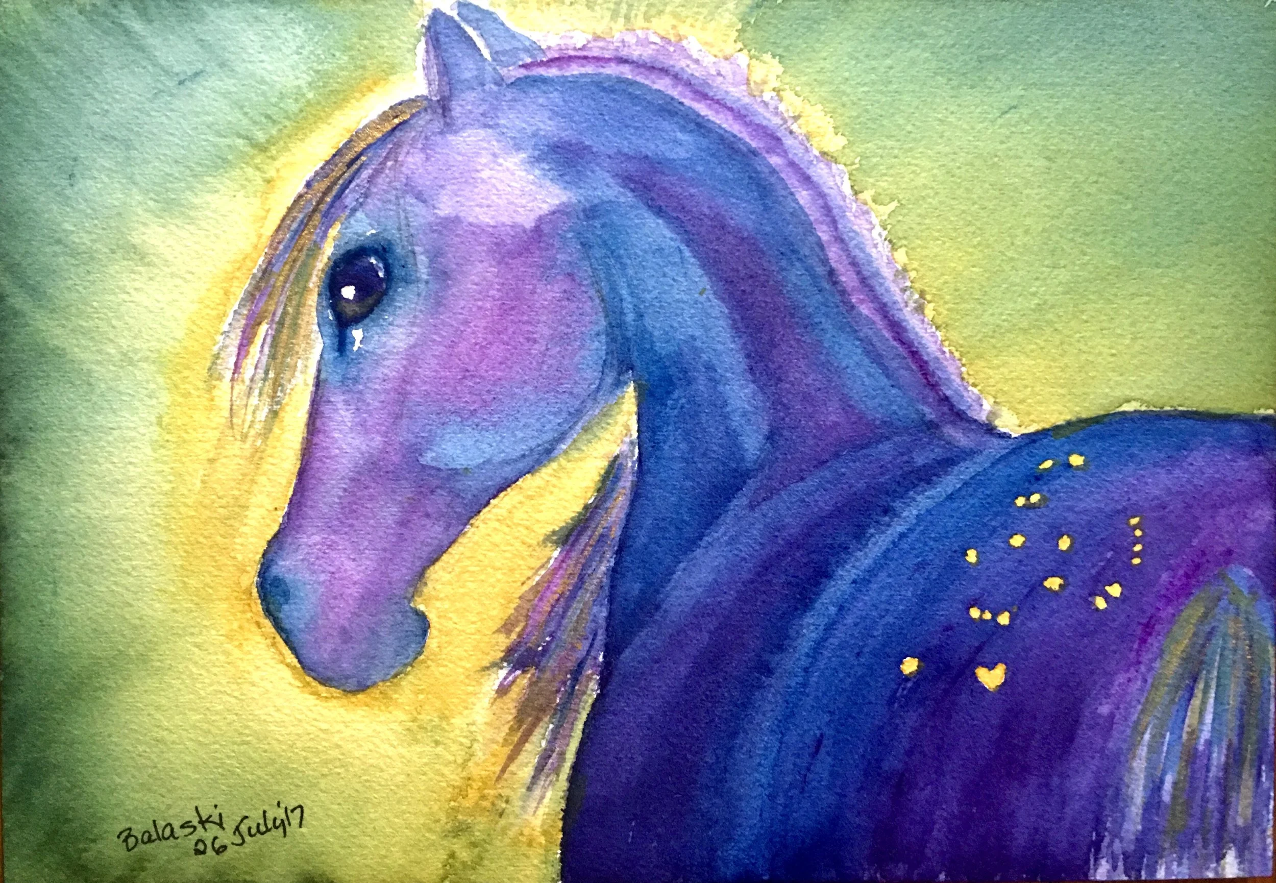 Belinda Balaski, a native of Southern California, creates colorful watercolor and pastel paintings. She is especially fond of painting horses, influenced by her childhood on the racetrack with her father, the well-known jockey, Lester Balaski. Her work focuses on capturing the spirit and unique beauty of living creatures and the natural world. She is motivated by the desire to share a spiritual sense of serenity and peace.
