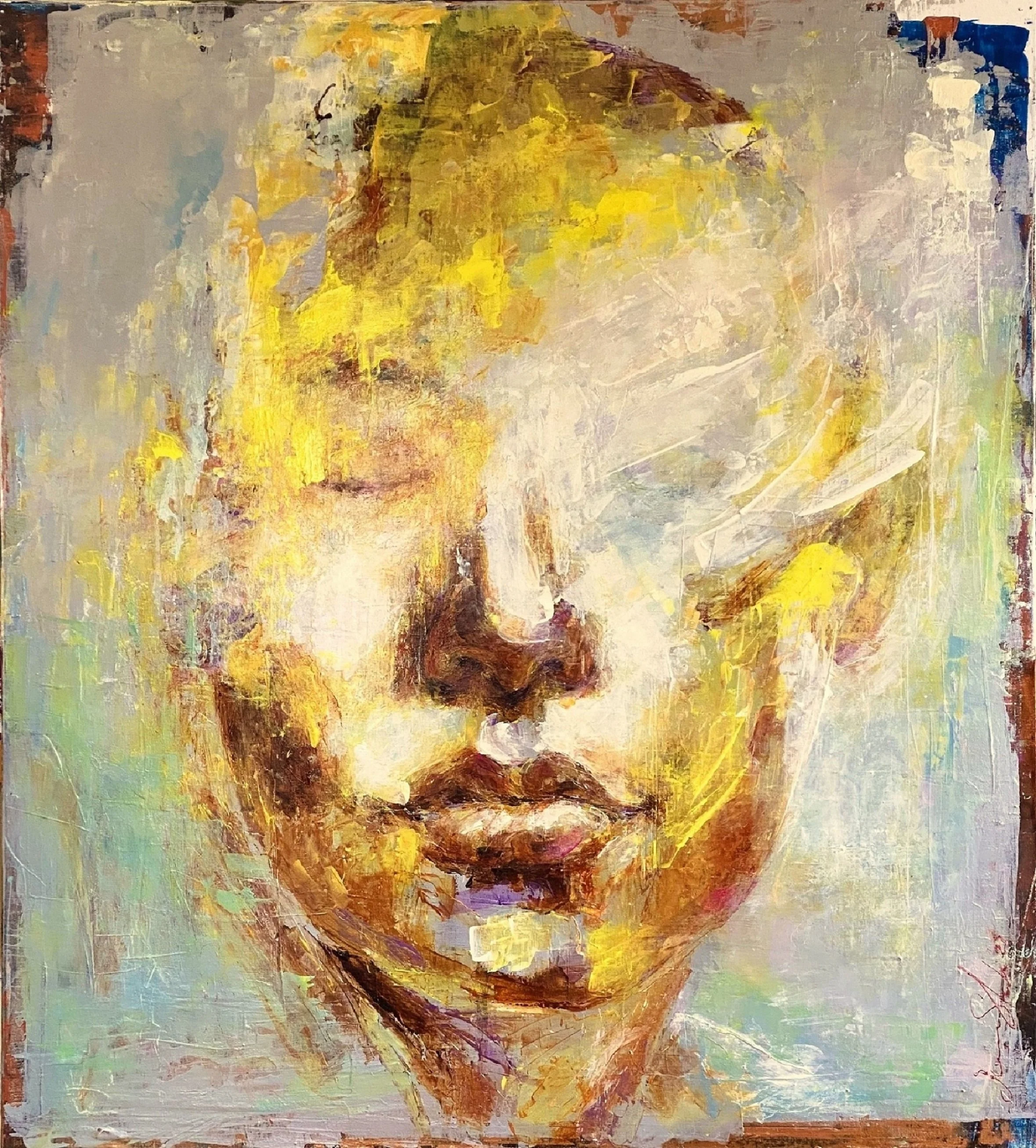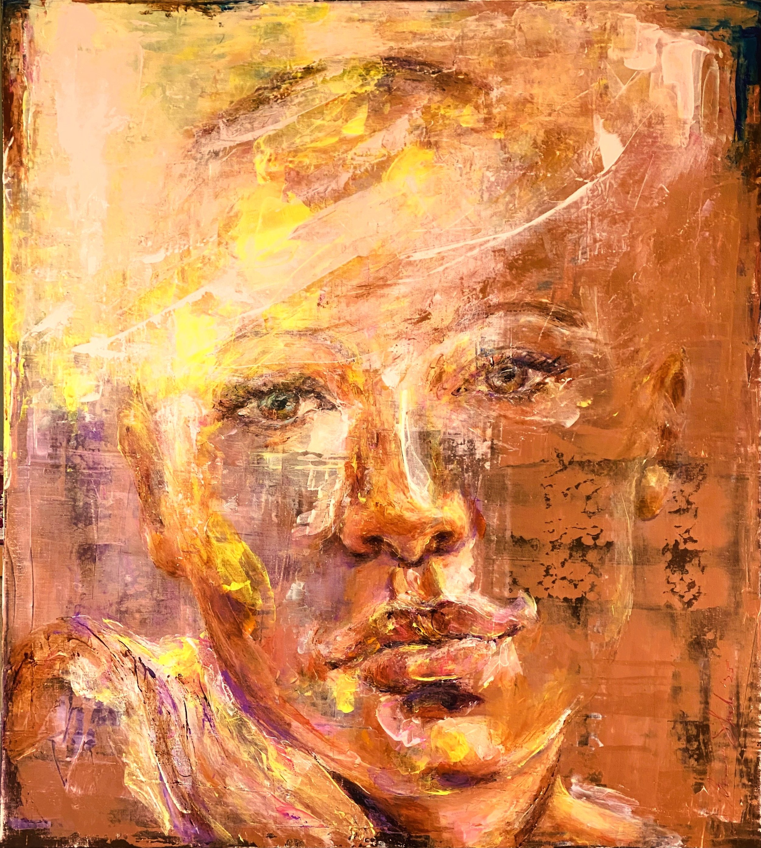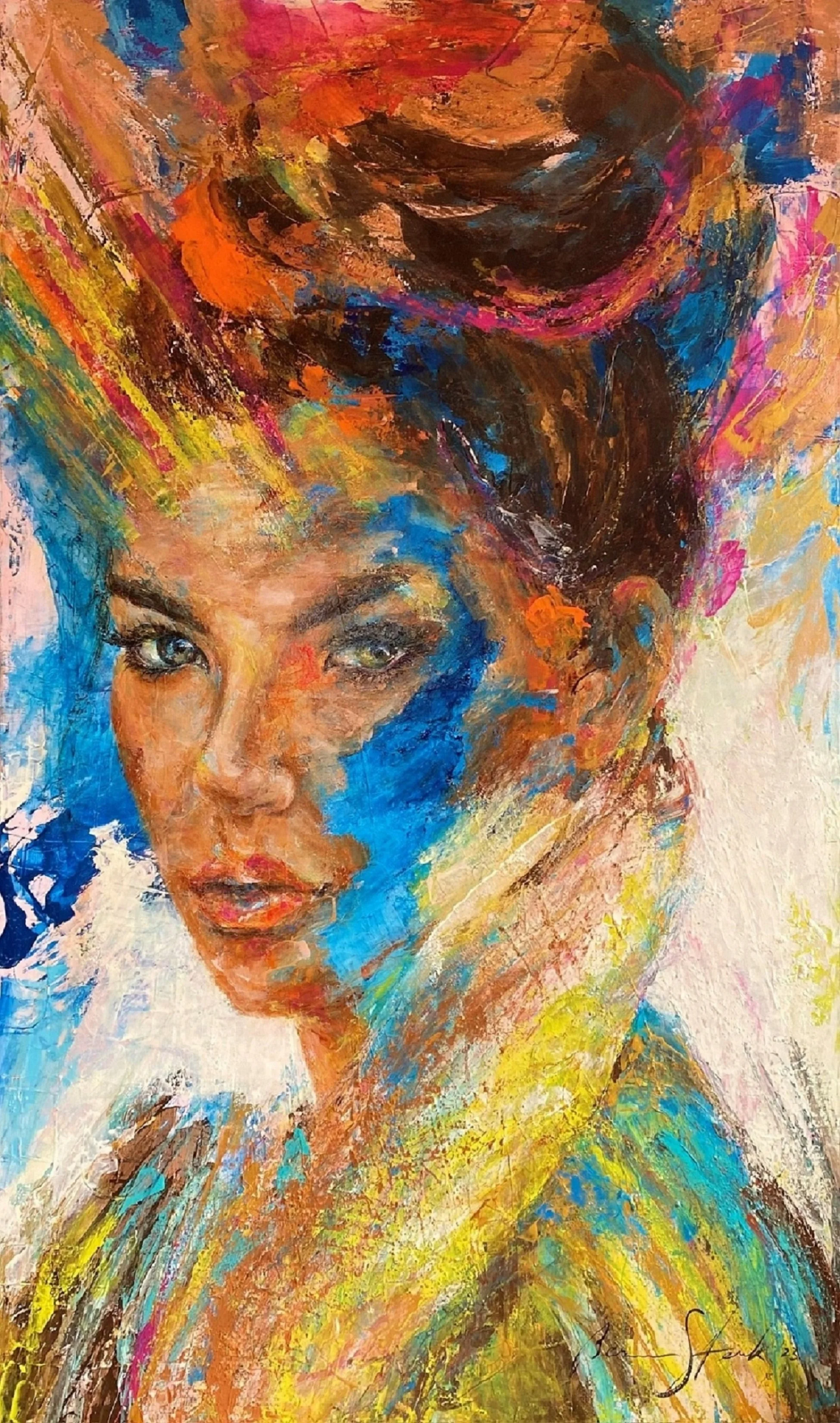 My technique is specific by using the Princeton catalyst only as a tool, giving the structure and the colors a special effect. I like to use the background colors as a part in the realisation of the portrait.