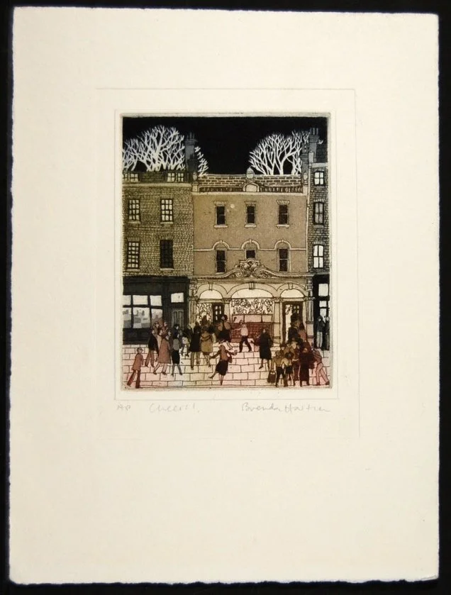 Born in London, England, Brenda Hartill emigrated to New Zealand with her parents in the late 1950’s, and was educated there, graduating FA honours at the Elam School of Fine Art Auckland. She returned to London in the late 1960’s to study at the Central School of Art and Design, specialising in Theatrical Design. After a period in academic America, she then worked as a freelance designer in UK theatre, including the West End, National Theatre, and Birmingham Rep. In the early eighties, she turned towards printmaking and has successfully published her own prints since. She is a member of the Royal Society of Painter Printmakers
