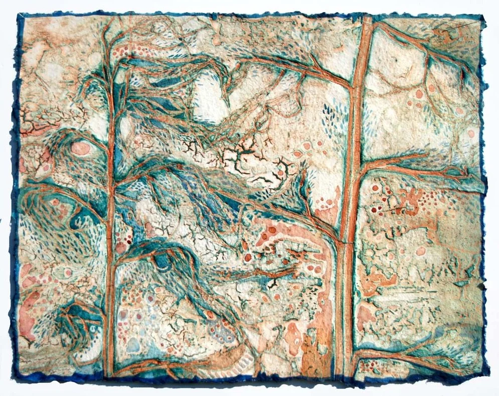 Enchanted Forest III collagraph using plant material and watercolour paper 56x76cm