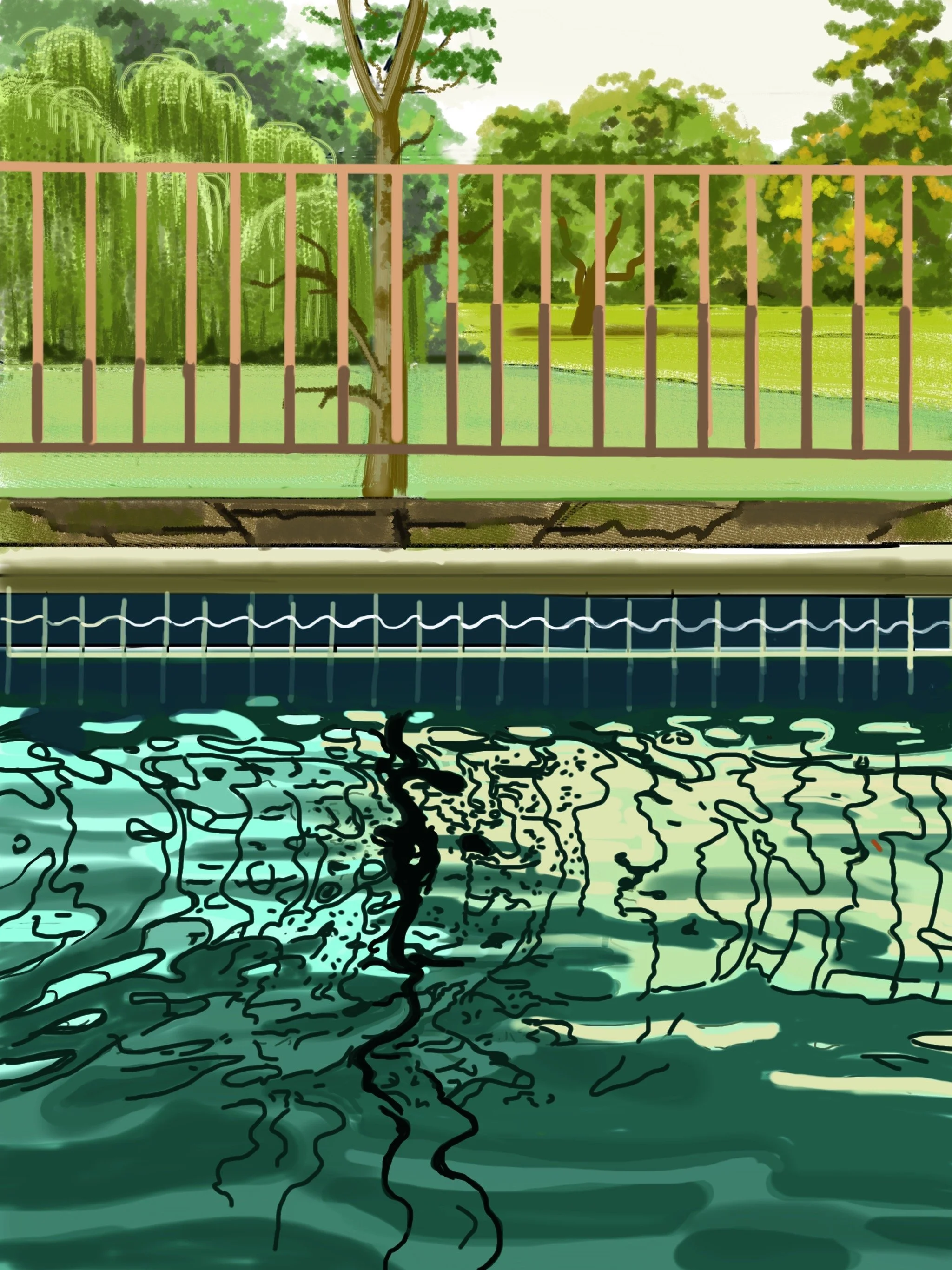 Your work is heavily influenced by David Hockney’s iPad creations. In what ways do you believe your approach and thematic focus diverge from his, particularly in the ways you each handle aspects like light and color in digital landscapes?
