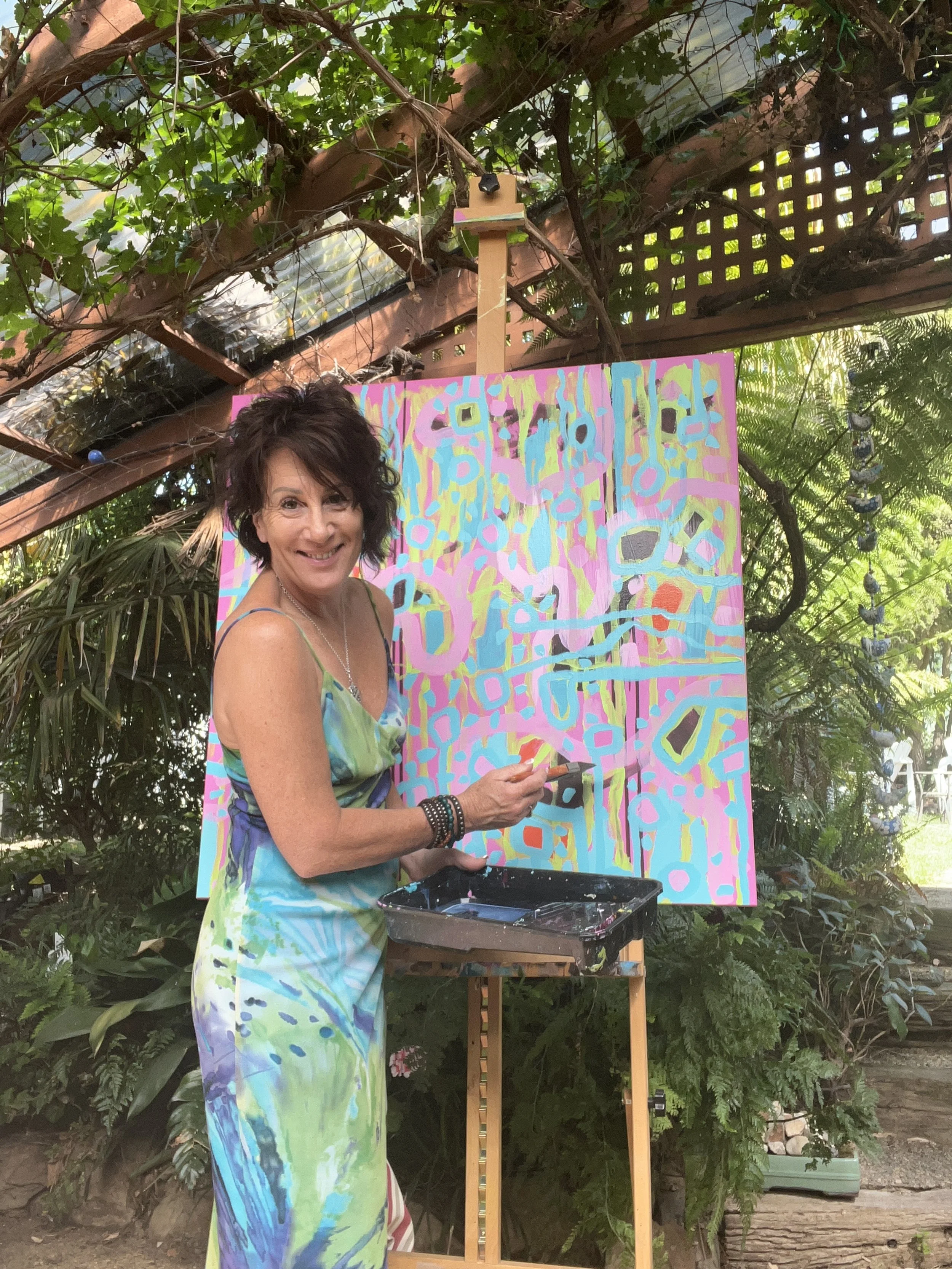 Rather than replicating my garden's details, I allowed each emerging flower – from early apple blossom to the heat of summer red salvias – to inspire my color and brushstrokes. Every two days I start a new painting, and they track the seasons' turning growth. Each canvas is a reflection of the burgeoning life around me in abstract form, inviting viewers of my paintings to feel the pulsating life I did.
