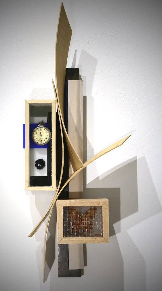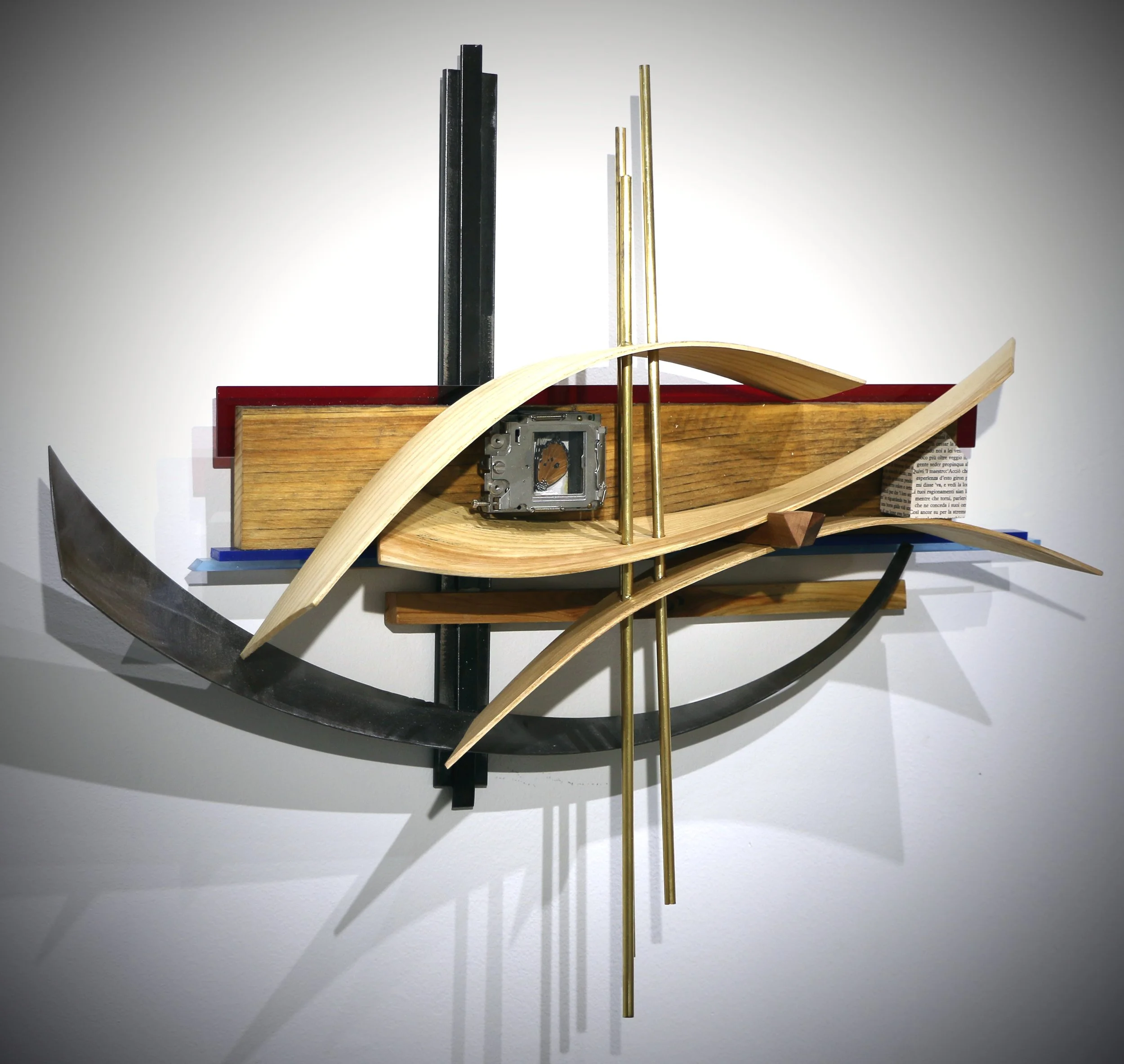 With these materials, he plays with movement, balance and space. He utilizes found objects represented alone or assembled with others relying on their inherent symbology or histories to create stories. His works are meant to be metaphorical in nature but can be appreciated simply as objects of beauty.