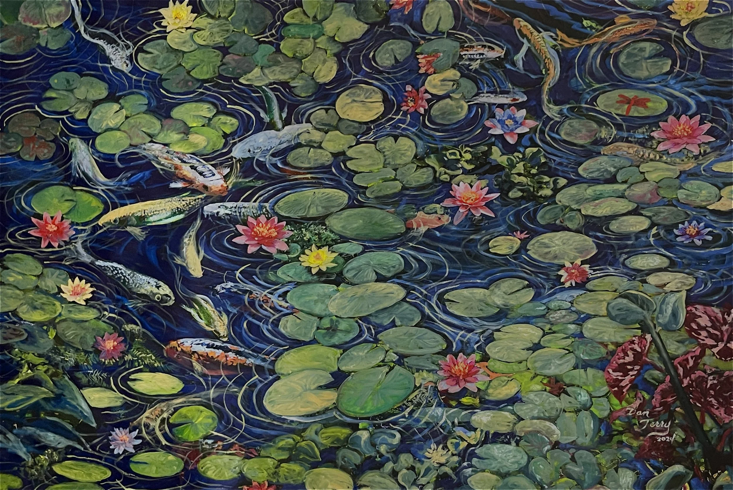Living Koi Pond, 2024, oil on canvas, 152.4 x 101.6 cm.