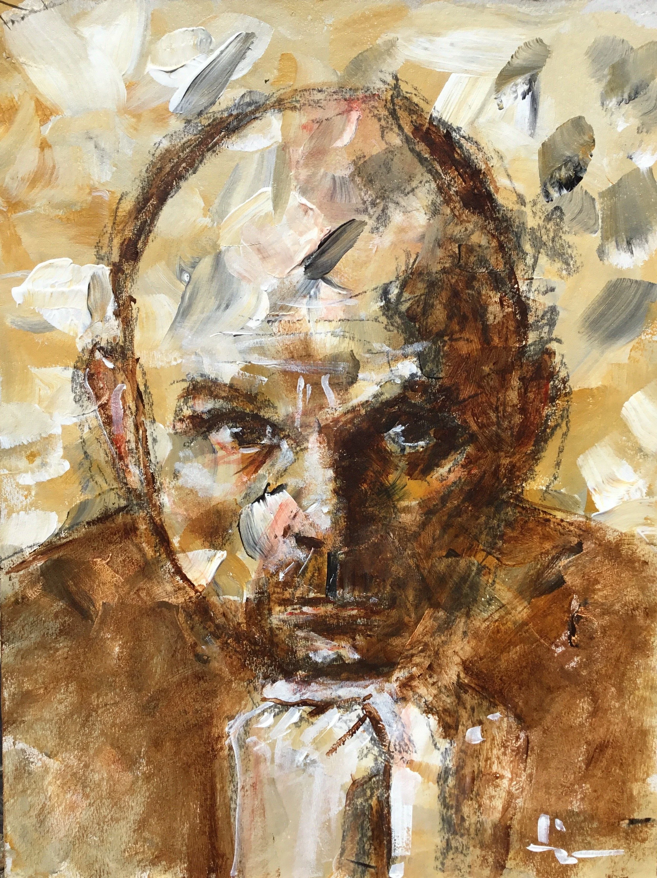I often say: "The portrait is the mirror of the soul of the model, the painter but also the viewer". I do not aim to show the viewer a complete and finished work (I often like to leave construction lines) but rather a support for a reconstruction. As if I were doing part of the journey and the other part was the responsibility of the viewer. The classic elements of portrait construction are there to guide him.