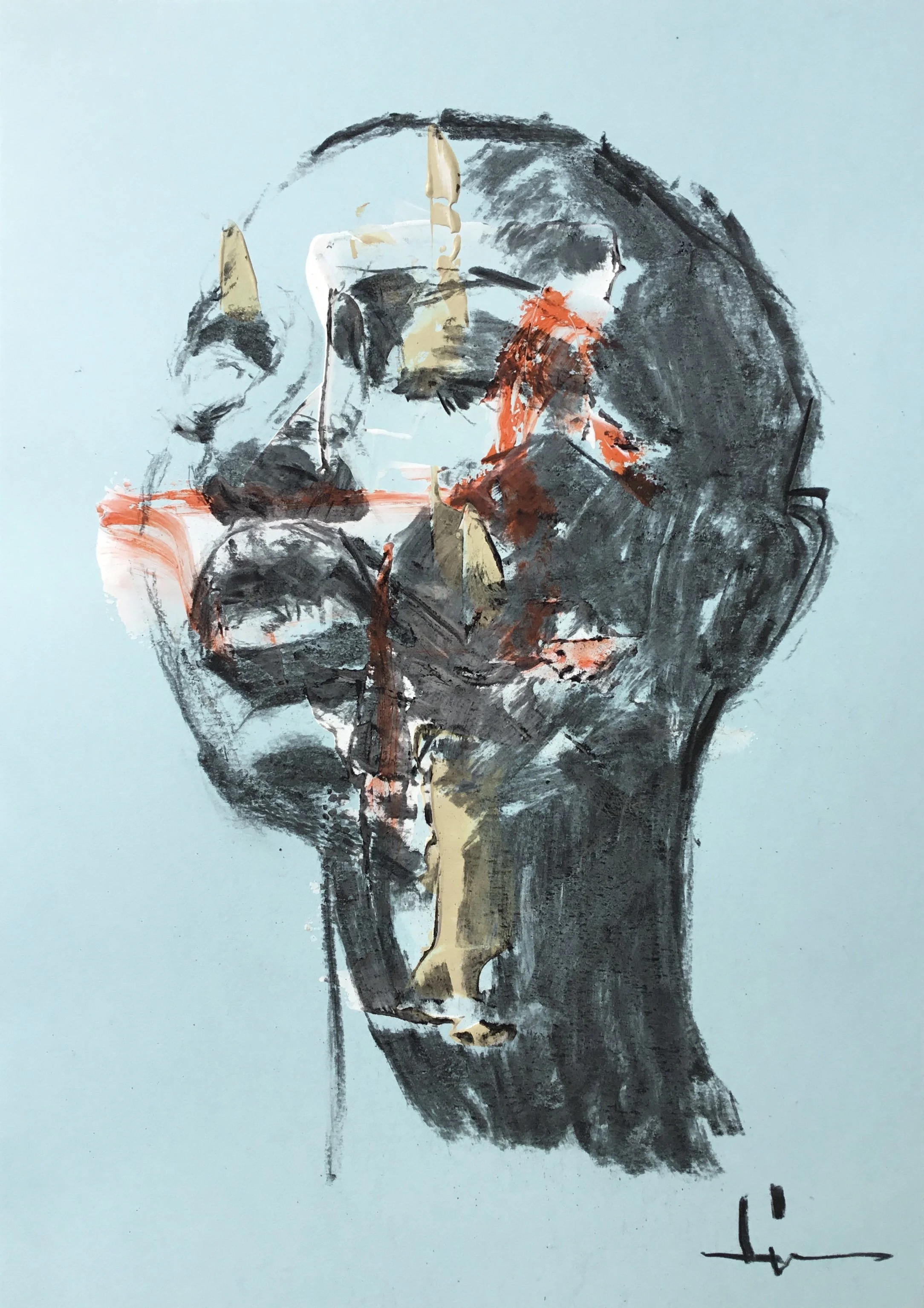 In my work, reality is what will guide the viewer to reconstruct the portrait he is looking at. A few lines are often enough to suggest (rather than giving all the details) the human form. For this I respect the classic codes of portrait construction. Often the decor/background will be present on the face. I like this idea of transparency and the impression it can give to the viewer. He has a representation of the portrait that will guide him in his commitment.