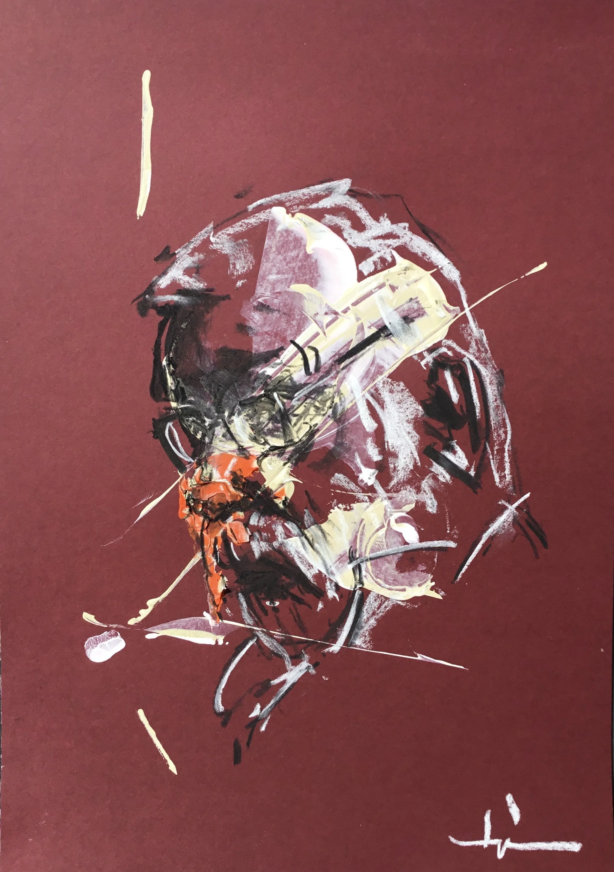 The mystery we are talking about probably comes from two things: first the construction technique that I use with backgrounds prepared in advance (blind) and then the choice that I make of the model and the background that will correspond to it. There is a bit of chance, personal choice and sensitivity there. I must also specify here that I like to work quickly, this also guides my way of working. I have a lot of trouble taking up an unfinished work later…