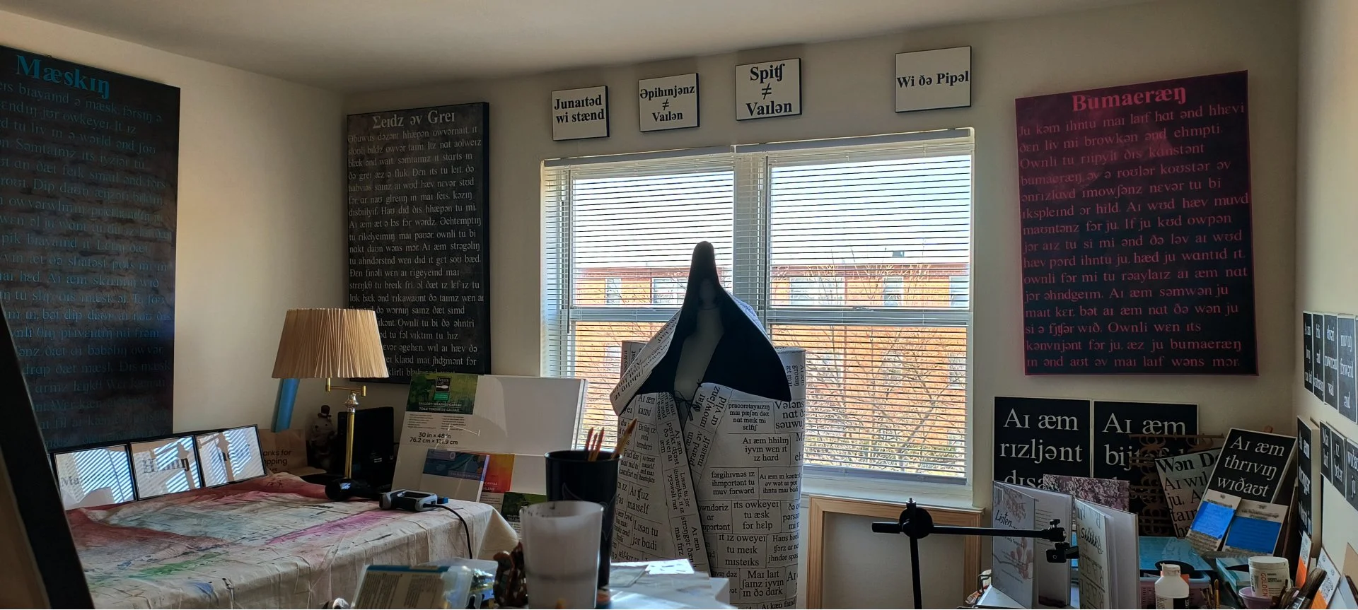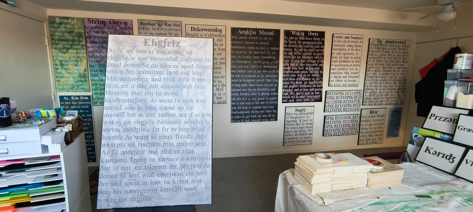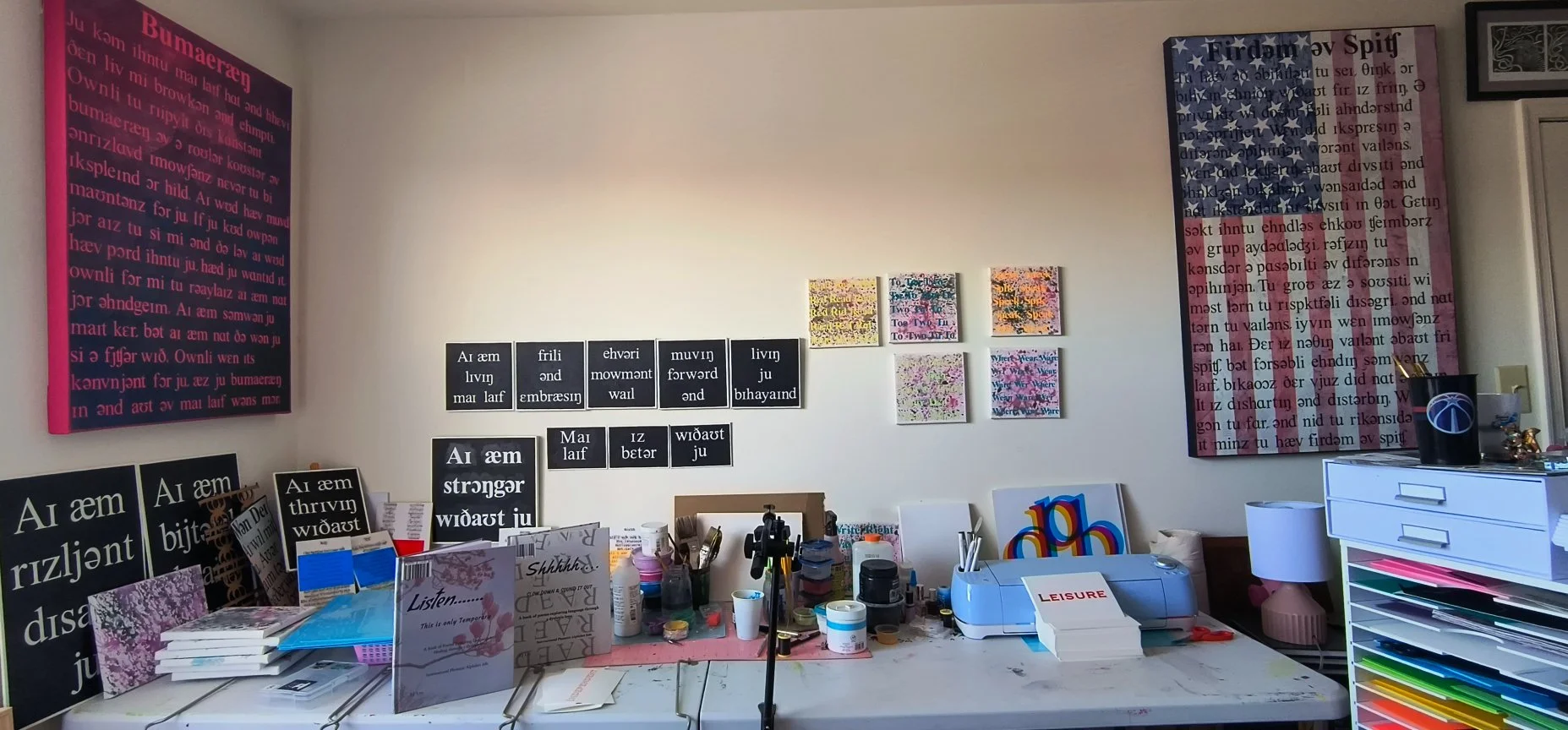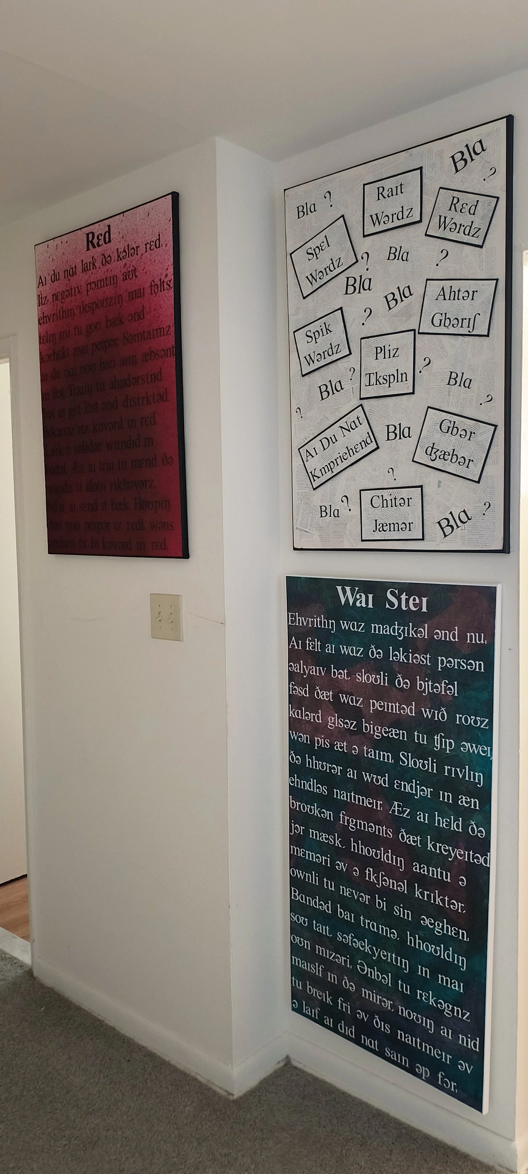 Figuring out the difference between a mistake and something meaningful has a lot to do with phonetics. As a child, I was extensively taught phonics until it became almost second nature, but even then, some words simply do not follow the rules. These frustrations were not something I thought would become part of my art practice, but they ended up shaping it. During my MFA, a random assignment about art and protest reignited my obsession with dyslexia and the complexity of language. I realized that misreadings, slips, and phonetic detours are not just errors; they are material and powerful.