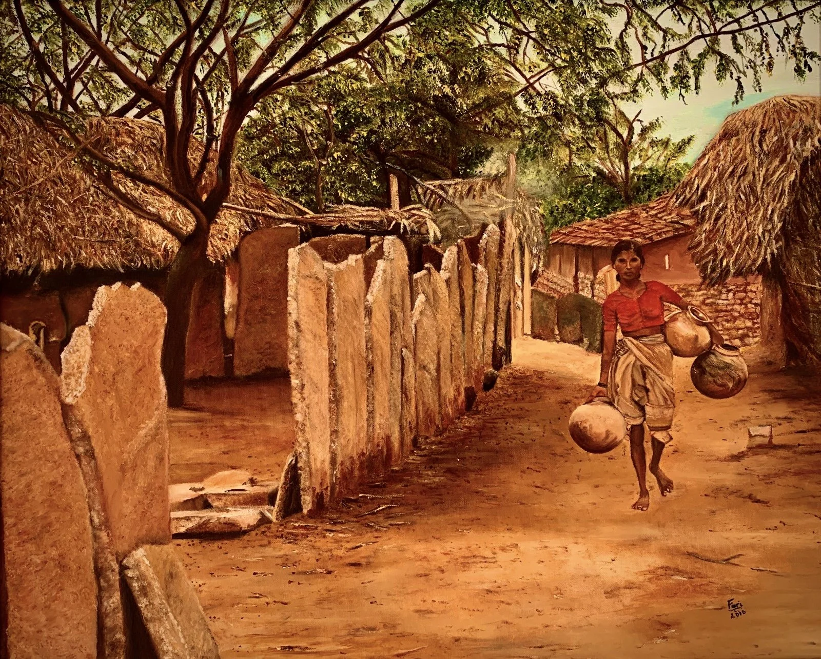 Details in my work are instinctual—this may sound contradictory but the details which first come out of my brush strokes are the instinctual and genuine ones. With too much refining, artificiality creeps in. That’s why I work with my bare hands and the traditional brush on the canvass devoid of any ‘techniques’ or technology or prior knowledge of the ‘how’. Technology, techniques, knowledge, experience are merely tools.