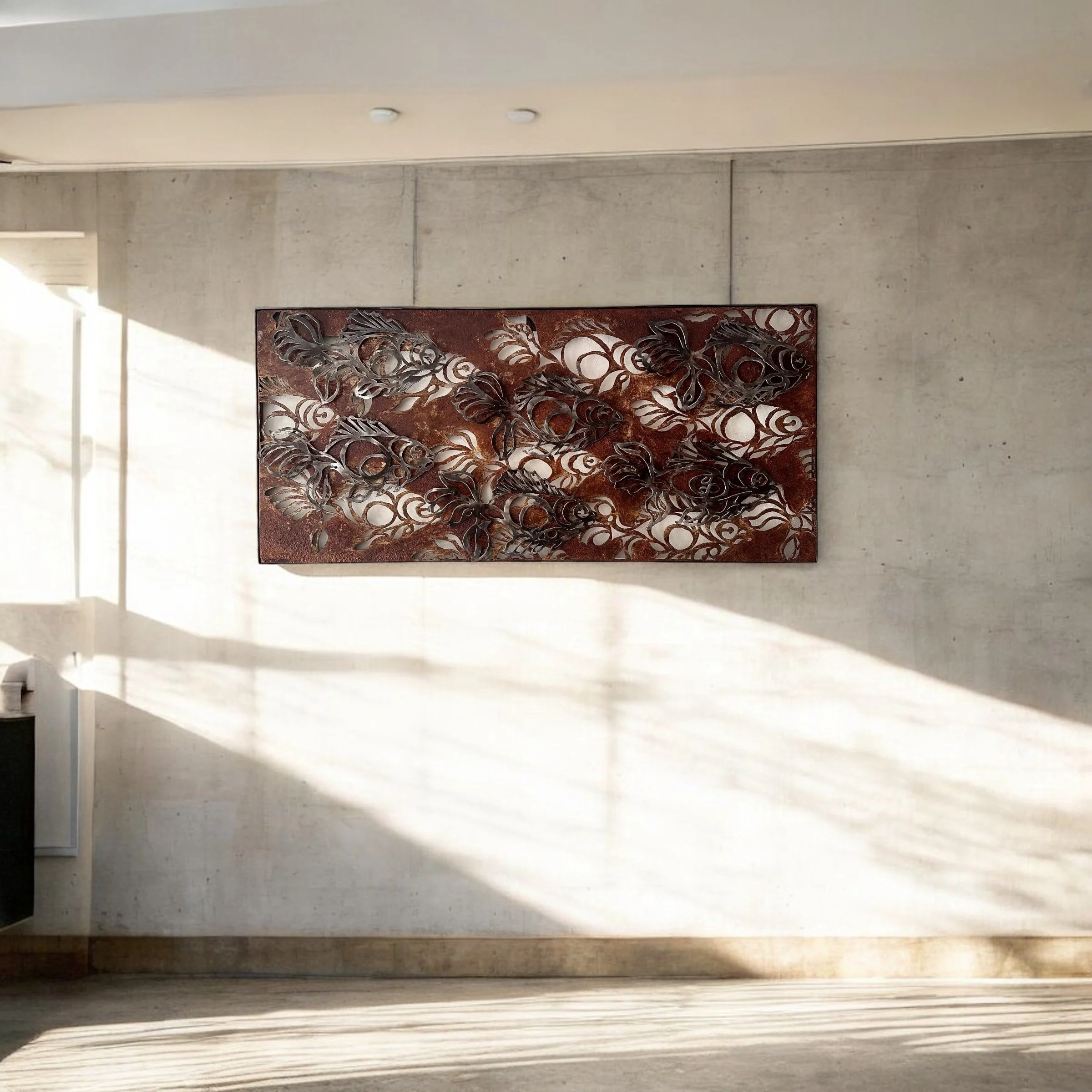 This balance of strength and delicacy is perhaps most evident in "LE BANC," a 2024 sculpture that depicts the movement of a group of fish. This work showcases a balance between strength and delicacy, emphasizing both the physical power of the fish as a collective and the fluidity of their movement. In this piece, the artist uses dynamic lines, textures, and materials that creates a sense of motion while maintaining a lightness and elegance to convey the natural grace of the creatures. The combination of these two contrasting elements—strength and delicacy evokes the energy of the fish in motion, as they school together in synchronized harmony.