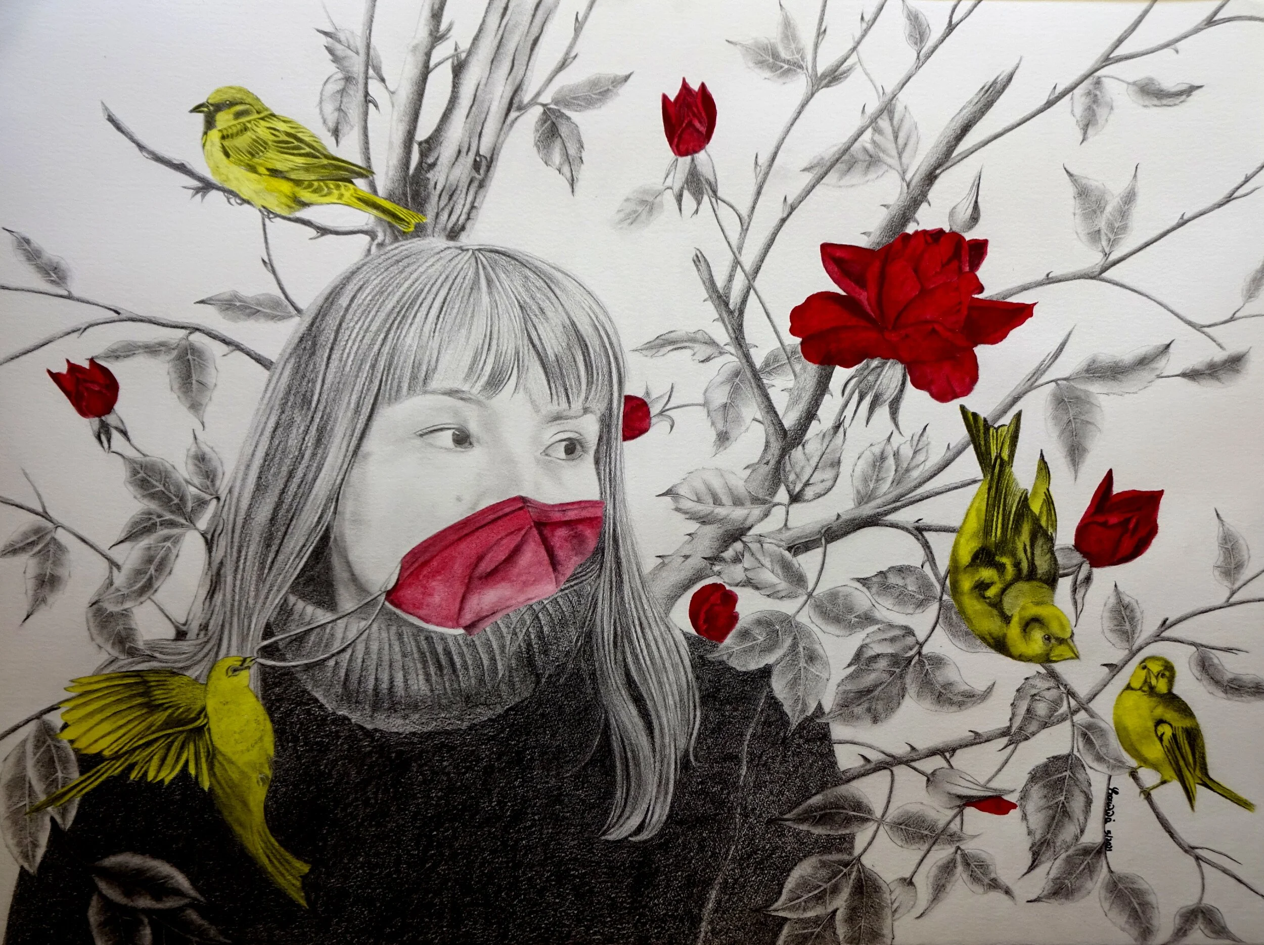 ''Spring will come ; ; ; ; '' -series covid19 , - pencil,watercolor , 56x76cm