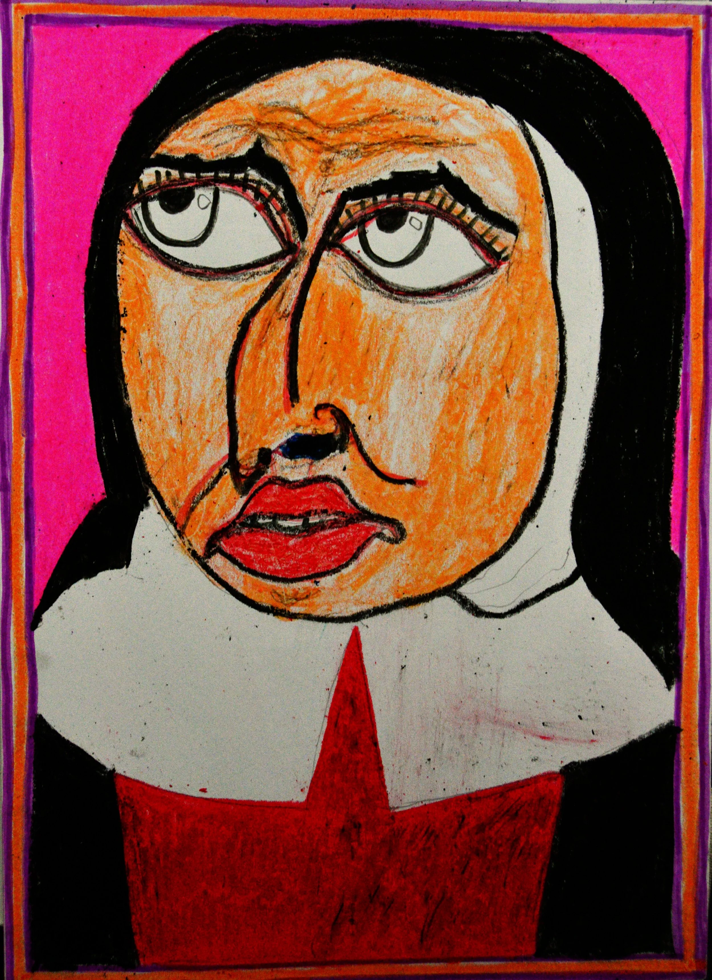My art is both naïve and conceptual. I want to show an idea, and I couldn’t care less about perfect execution. I ignore size, form, perspective—hence why so many of my works look flat or two-dimensional. My technique is deliberately rudimentary and childlike, and I never sketch beforehand.