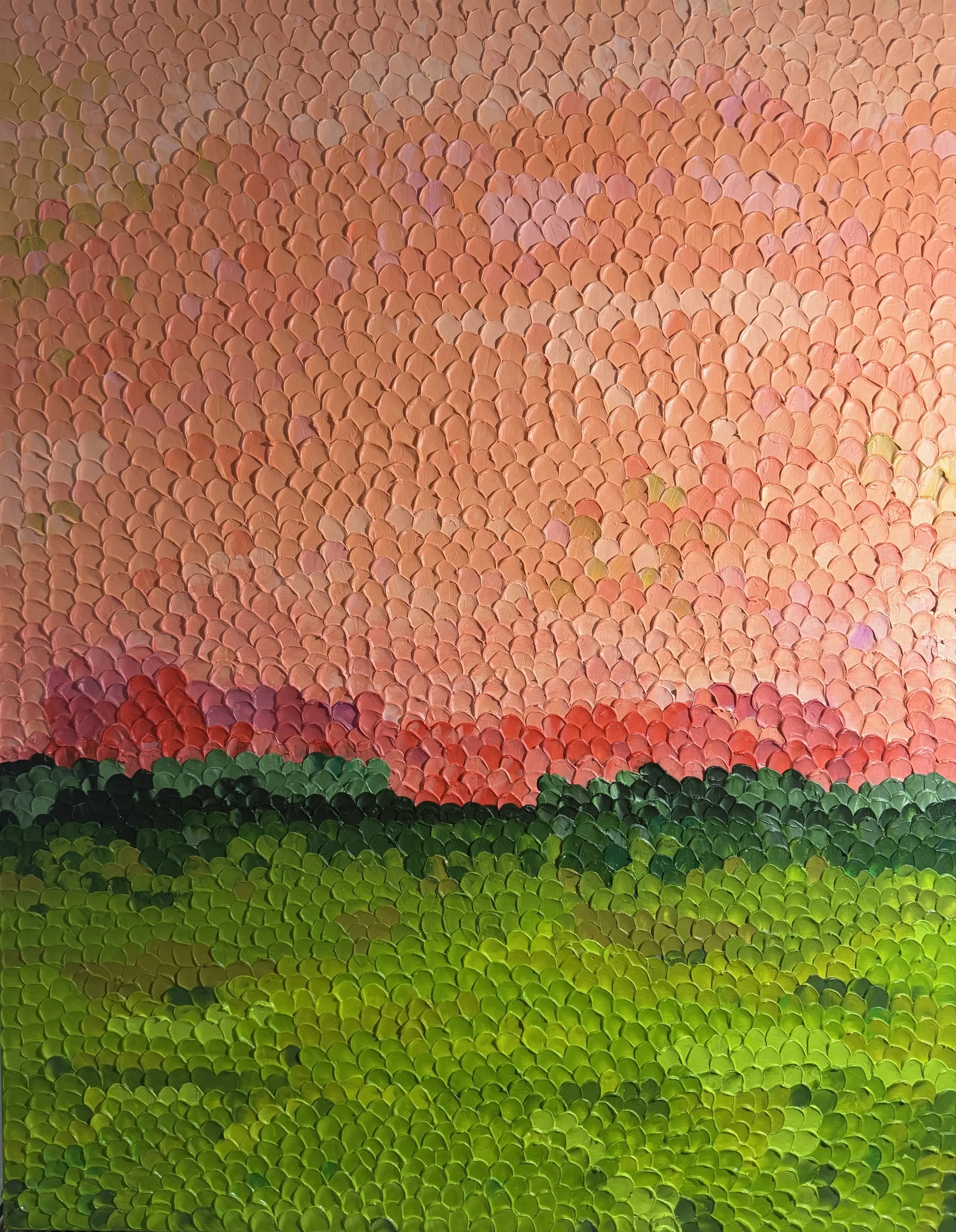 Salmon Dusk, 2026, Textured Acrylic on Deep Edge Canvas, 90 x 70 cm