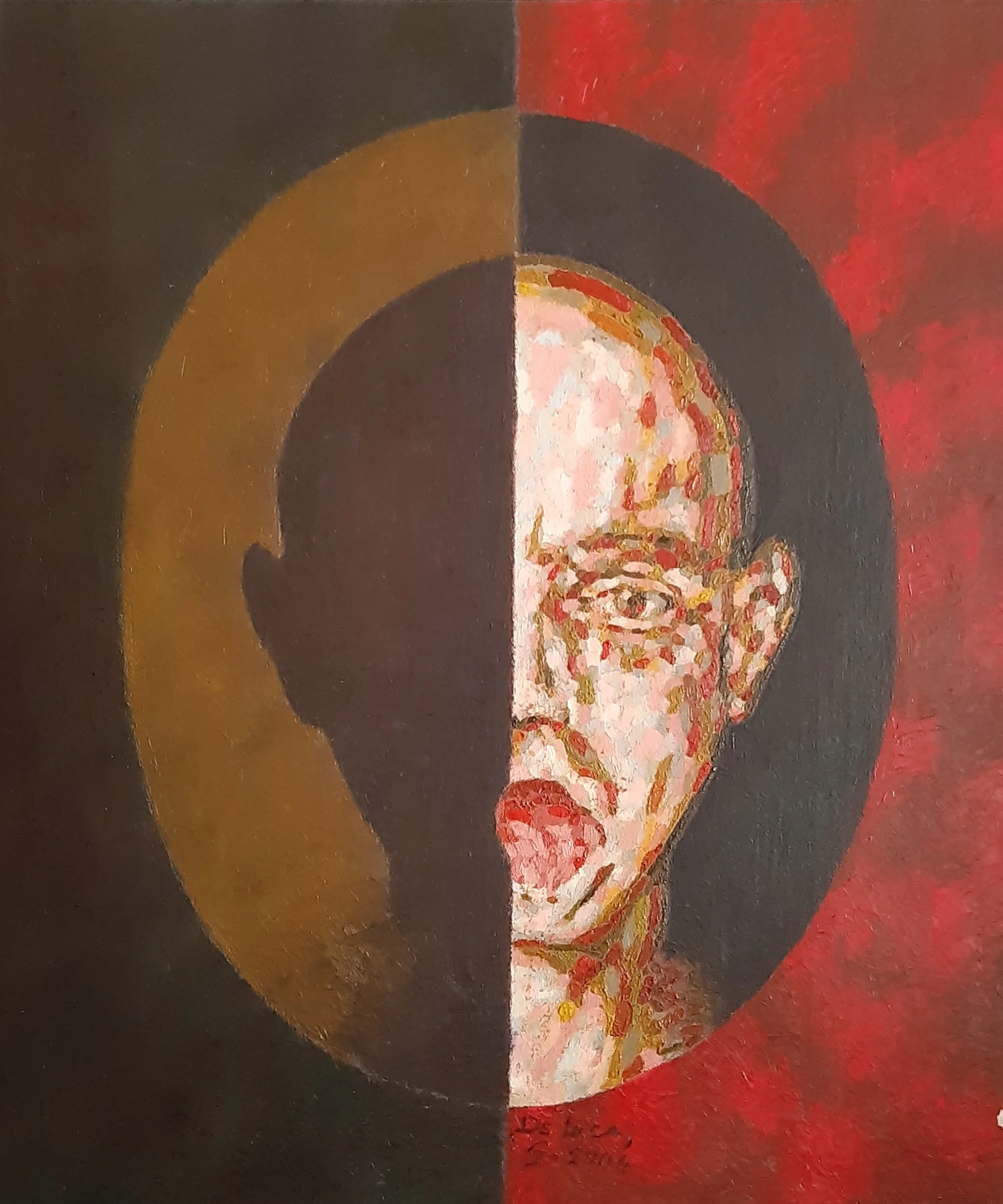 Self- portrait - evolution 2004 oil on canvas glued on masonite 43X51