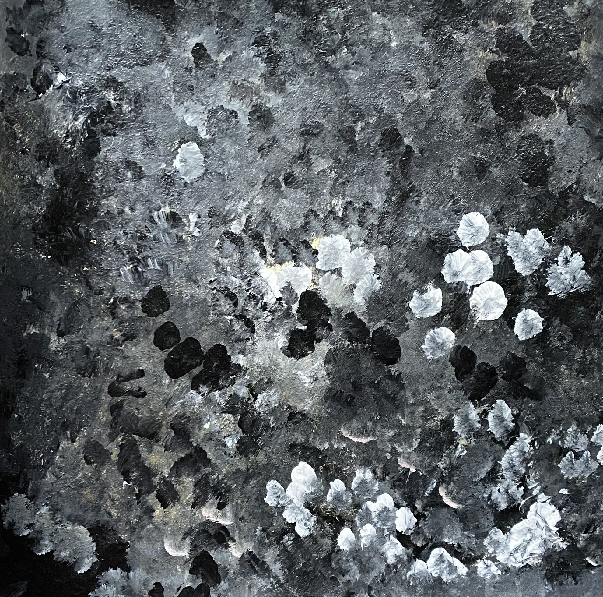 Abstraction in Black & White, 2025. Acrylic on canvas panel. 50 x 50 cm