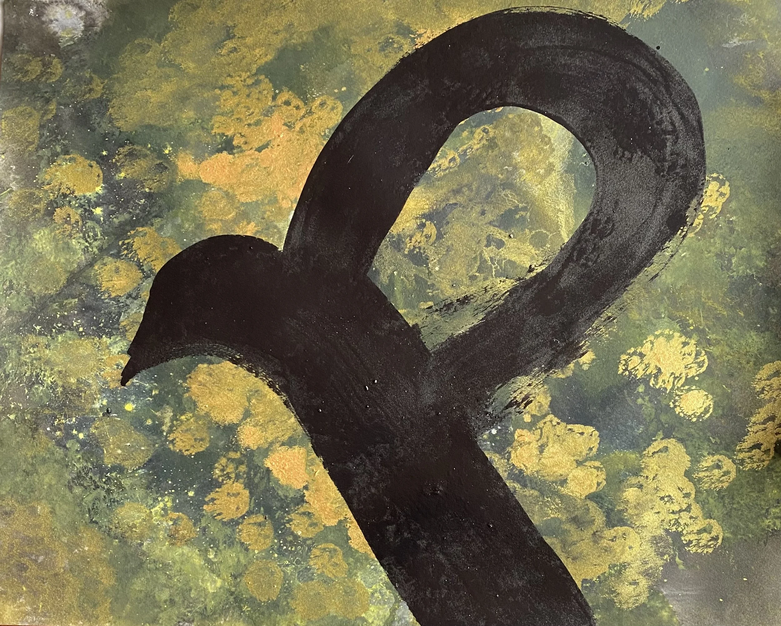 Sakana, 2025. Ink on handmade paper, 30 x 28 cm