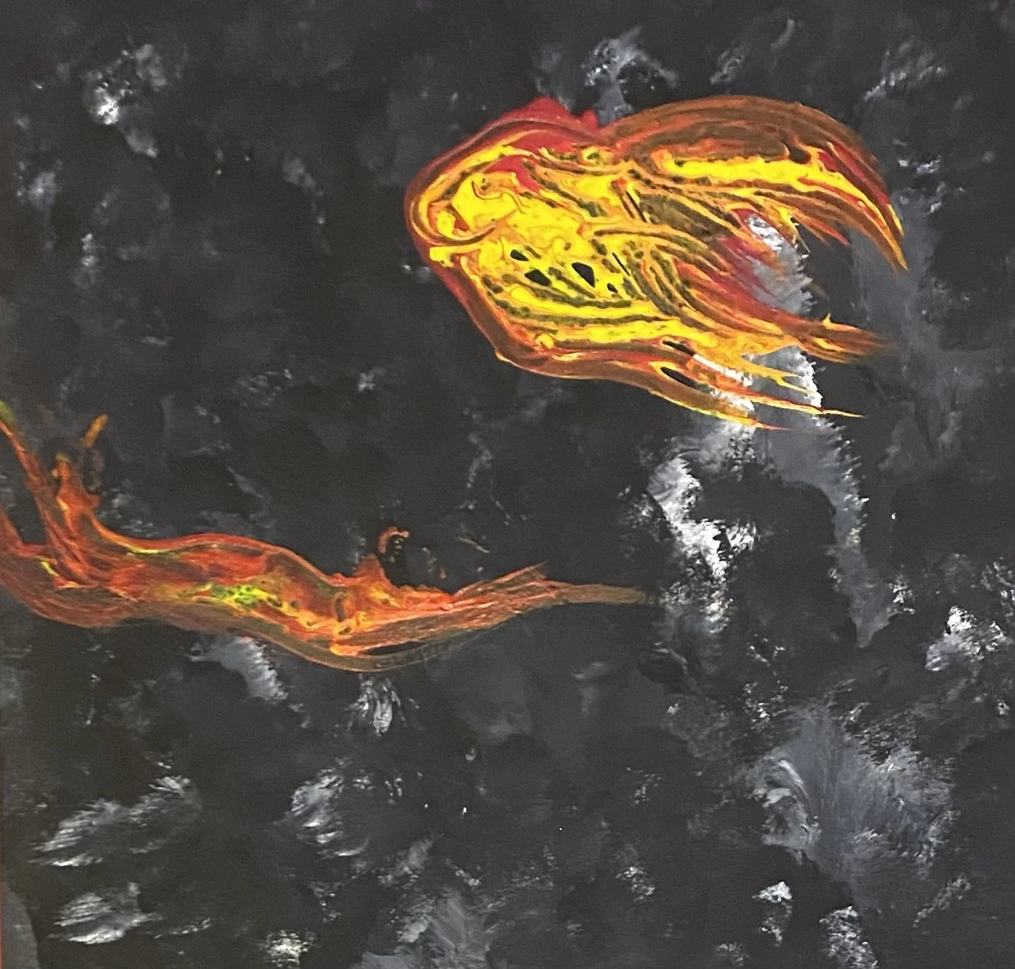 Dragon Fish, 2025. Acrylic on canvas panel, 50 x 50 cm