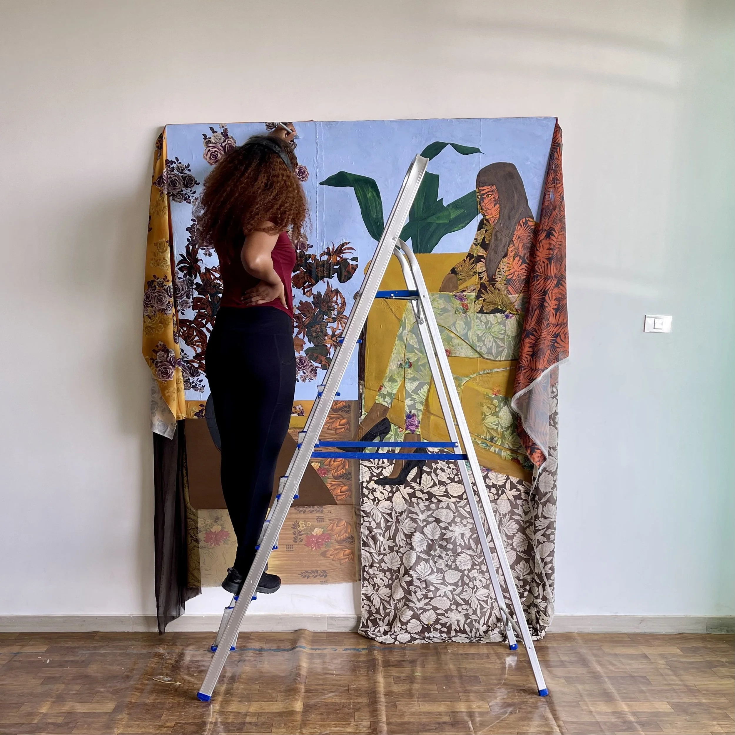 Growing up in Addis Ababa, Ethiopia, a large city populated by people of many cultures, I have observed firsthand a variety of languages, religions, and cultural traditions. Visiting Europe and moving to the United States has inspired me further and exposed me to an even broader understanding of culture. I think about how these important and present qualities of life can be expressed through the visual language and the materiality of painting.