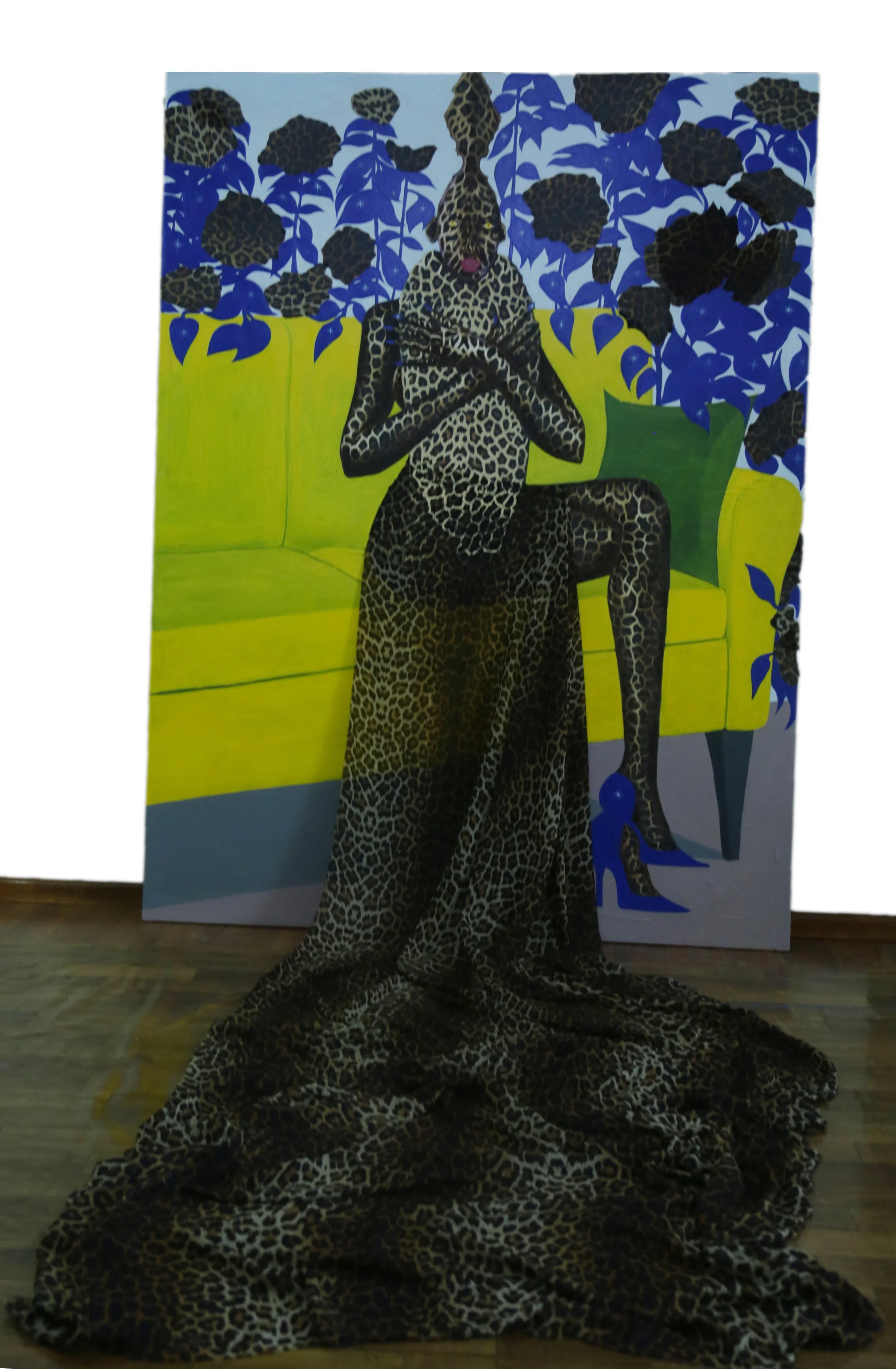 Accumulation of mark and color, the layering of space, and the use of different materials as a substance such as fabrics, printed images, wood, thread, and paint allows me to describe, visually, the realities of a specific place and it’s social and environmental situations and create a conversation in the global space. Preserving ideas from the fabrics in the process of making painting allows the fabric to function as a paint but not as a surface.