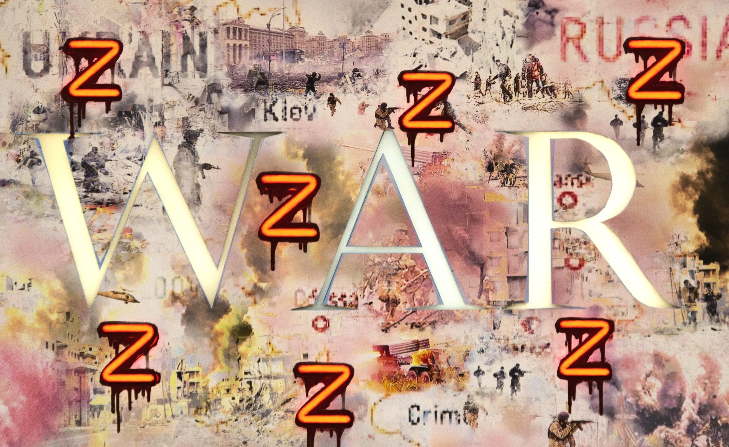 Yes, I introduced electronics to create an attractive form, a contemporary concept that could generate new possibilities to give meaning to the visual form in a different way. A work that can be seen as one of the first of a number of these works is a work entitled: 'Still Victory', which shows the ancient symbol of freedom, the V-sign, but at the bottom of the neon letter releases the drops of blood as a penetrating meaning that freedom is actually an empty promise. The depiction also consists of a background of a newspaper photograph from the time of the 2nd Techen War, in which Grozny was completely destroyed, as a meaning-enhancing representation. In the same way, in other works, sometimes with old neon letters, which once adorned the facades of factory buildings and have been snatched from destruction, are used to give explicit form to a meaning.