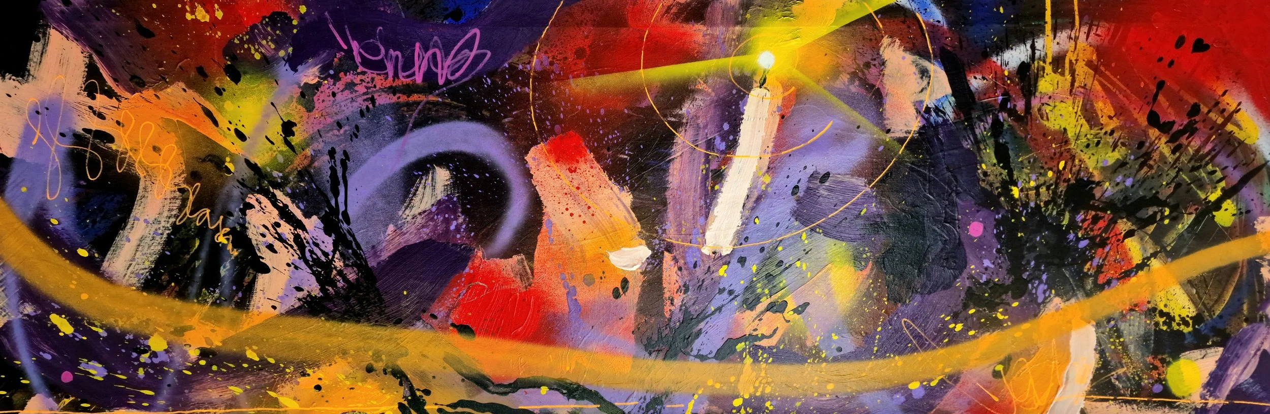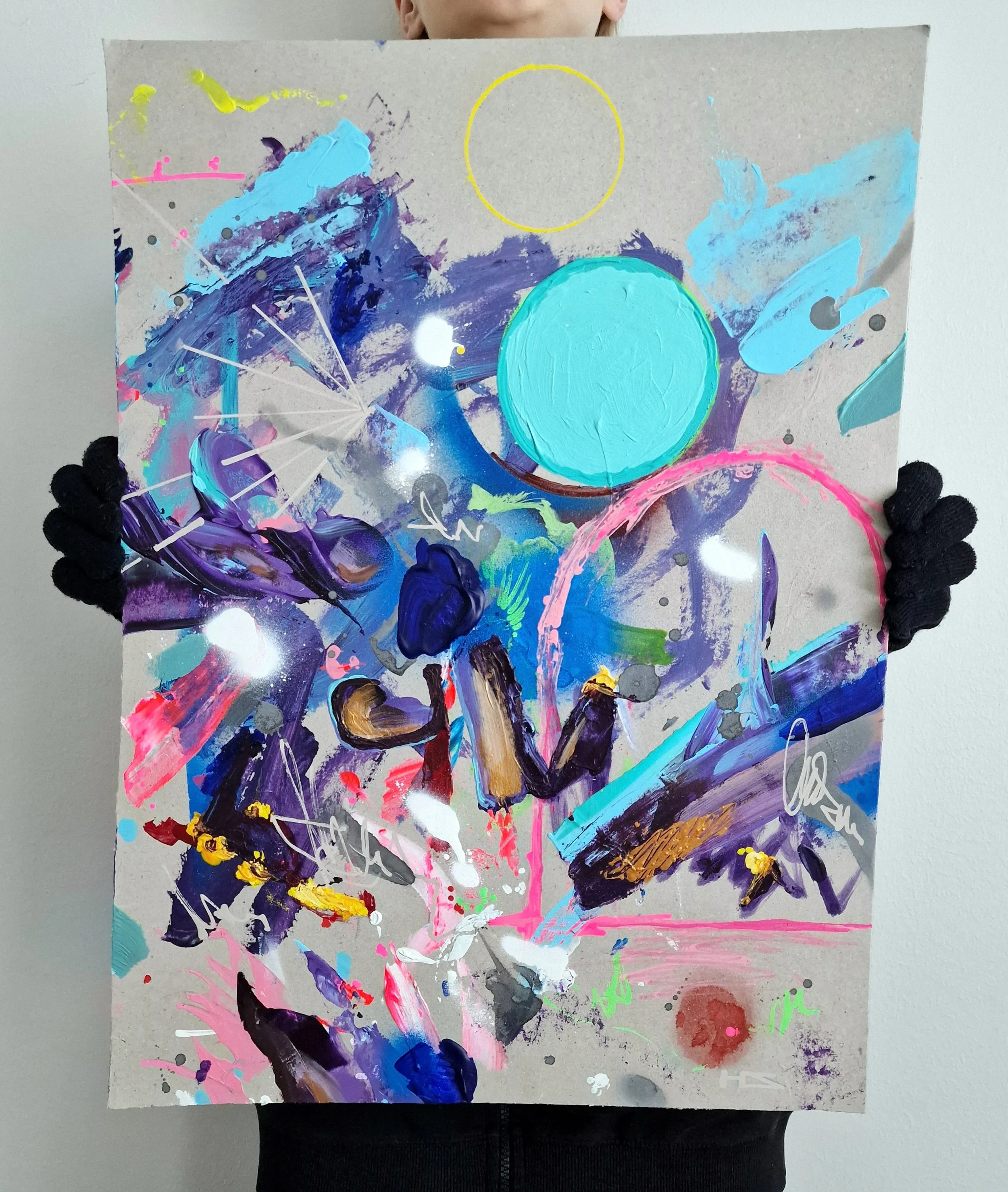 Street art taught me to read the environment as a surface—one where a mark can be left without permission, and above all without a predefined frame. Hip-hop, in turn, taught me that borrowing, sampling, and reconfiguring are not deficiencies but a language in themselves. In both cases, the core question is who gets to speak, and under what conditions. This starting point stays with me even when my work moves within abstraction and institutional contexts. The intention in my paintings is to bring forth a strong—sometimes even affective—emotional charge, along with free energy and a sense of flow, through the means of contemporary abstract art.