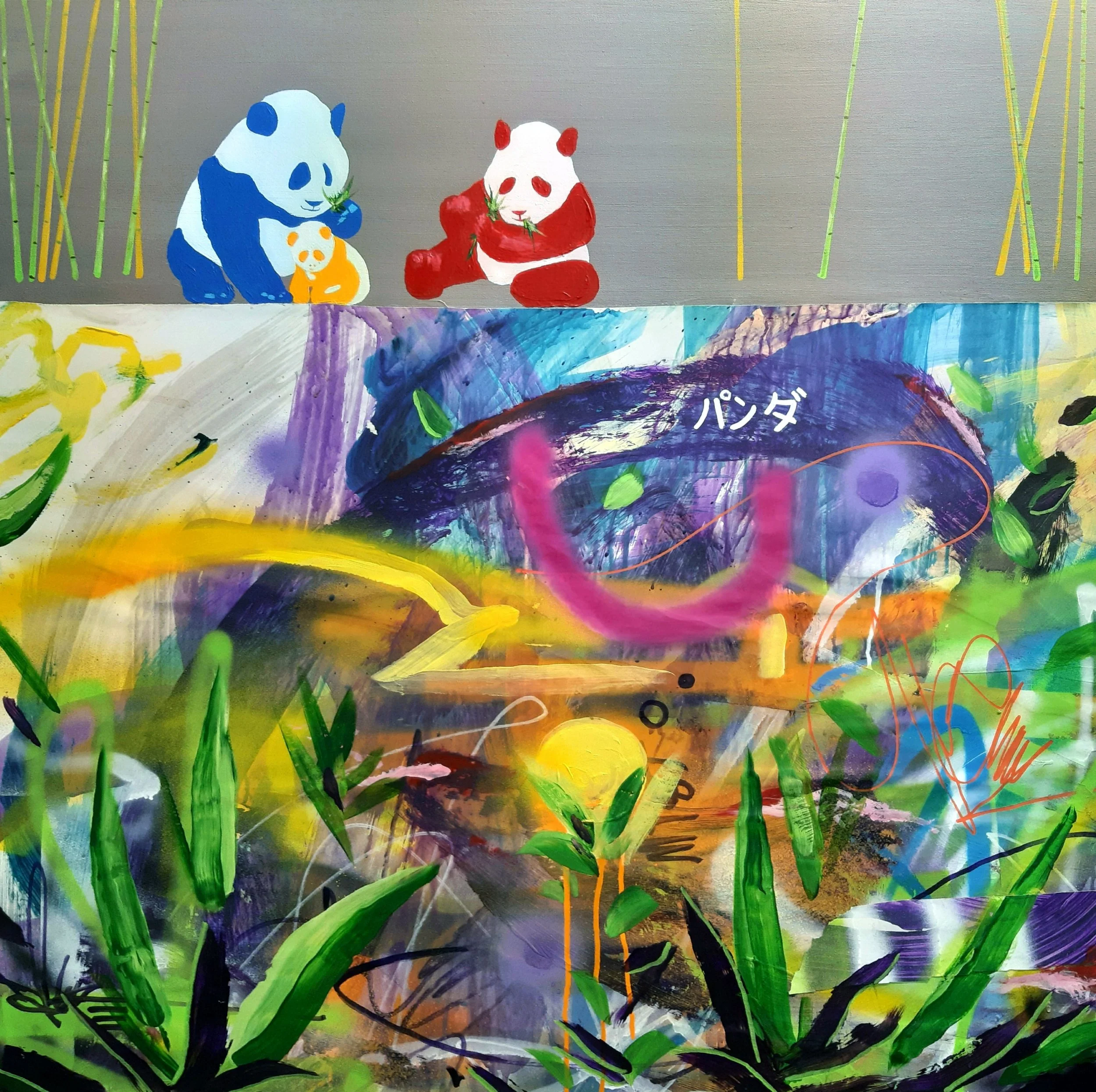 Get Together, 2022, 90x90cm, acrylic collage on canvas