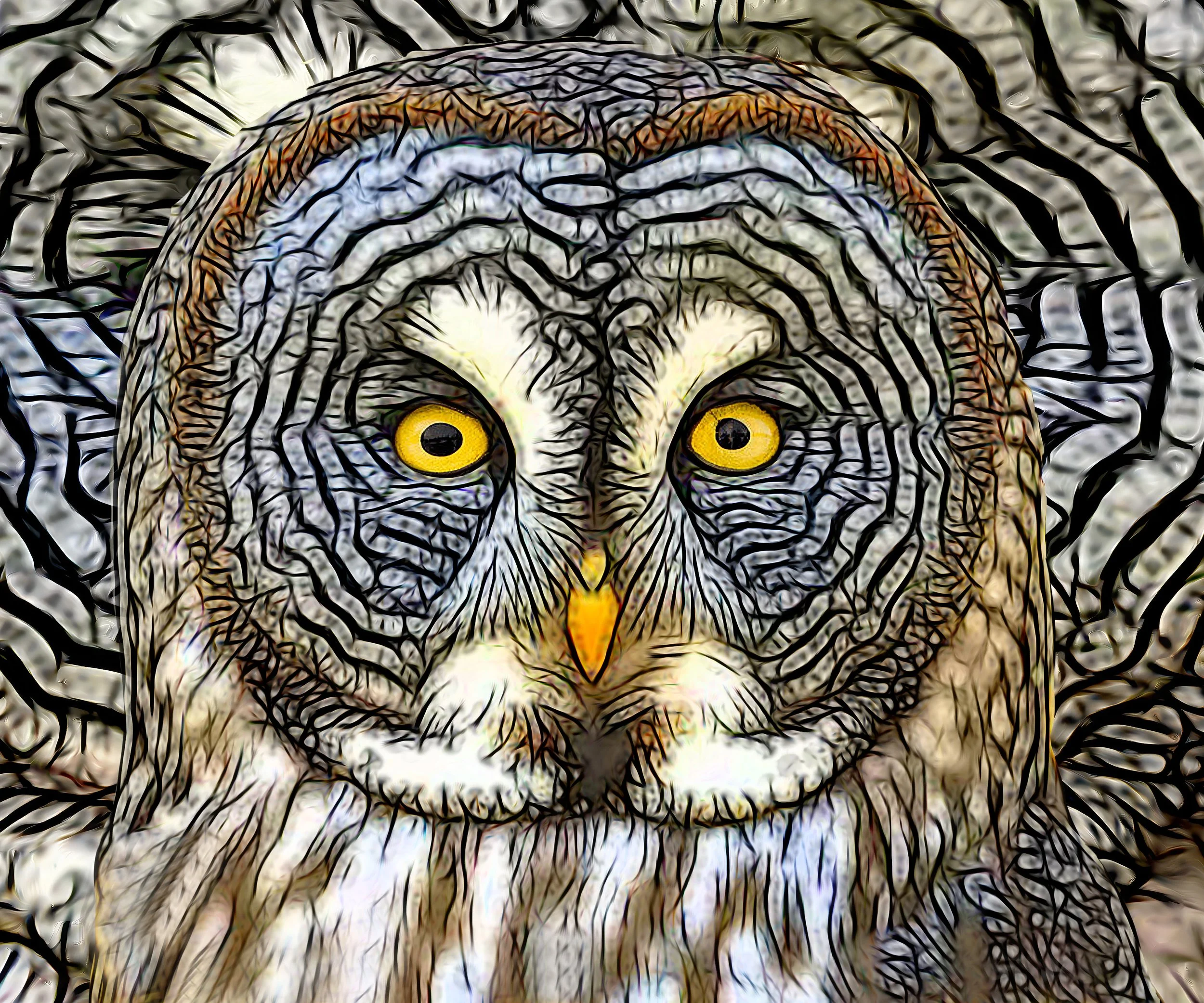 Galapagos Owl, 2025, Sublimation on Aluminum with Acrylic Overlay, 91x76 cm