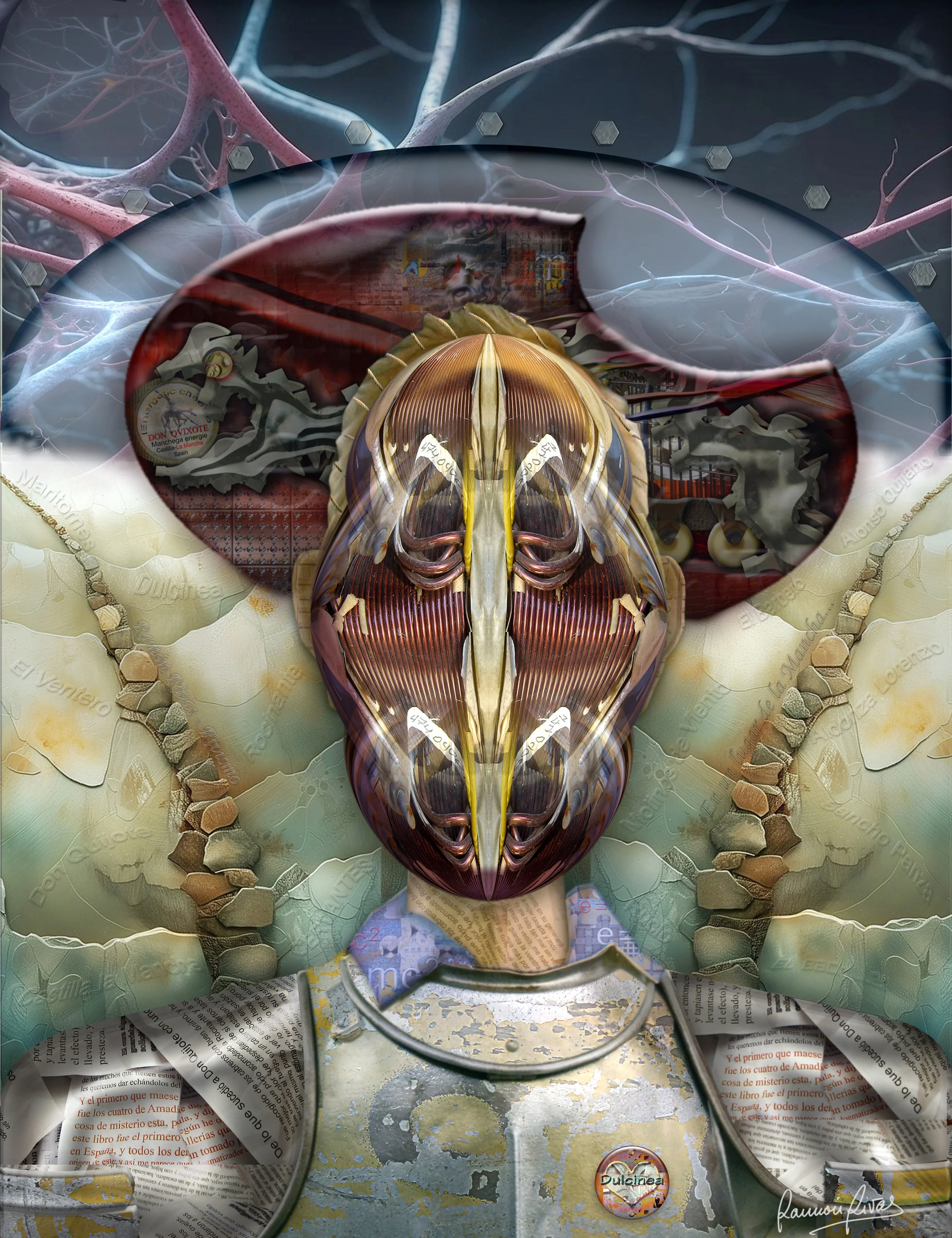 The application of the philosophy and concepts of Experiential Brushstrokes to the incorporation of lived experiences into everyday materials, objects, and elements, which come to life and tell their own stories, establishing empathy, equality, and a reassignment of roles between the weak and the strong, revitalizes the legacy of Don Quixote, a Manchegan icon of world literature, transforming him into a vehicle for exploring timeless themes in contemporary art. Through works such as "Magnetismo Manchego. Quijote y Rivismo" (2007), I reconstruct the knight using an obsolete welding machine transformer, cables that form his melancholic face, and elements like a flying dragon on his helmet (a barber's basin) fueled by Manchego cheese, or a modern shirt emblazoned with Einstein's equation of relativity. This reconstruction not only honors Don Quixote's Manchegan origins—with direct references to Cervantes, Dulcinea del Toboso, and Quixotic madness—but also makes him contemporary, projecting him as an eternal traveler through galaxies and generations, healing sorrows with symbols of idealism. This heritage influences my understanding of movement in contemporary painting by emphasizing the molecular and energetic dynamics of materials.