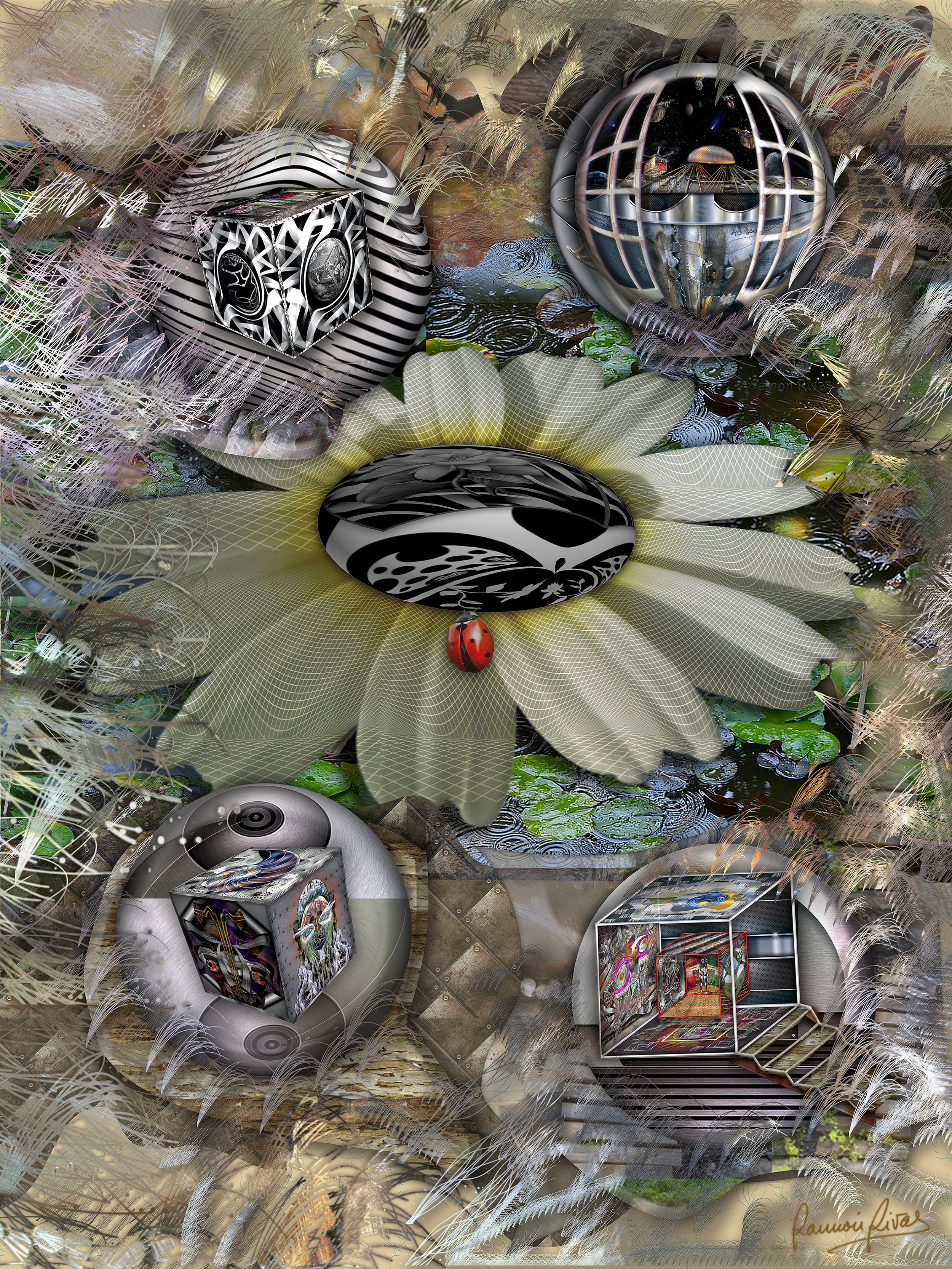 I maintain this conceptual density through key concepts such as "Experiential Brushstrokes," which act as vehicles for merging complex ideas—such as Einsteinian relativity, Leonardo da Vinci's inventions, abstract geometric structures (cubes, jars), or dynamics of transformation and equilibrium—into compositions that evoke multiverses or unicellular foundations, but always from an immersive and non-linear perspective.