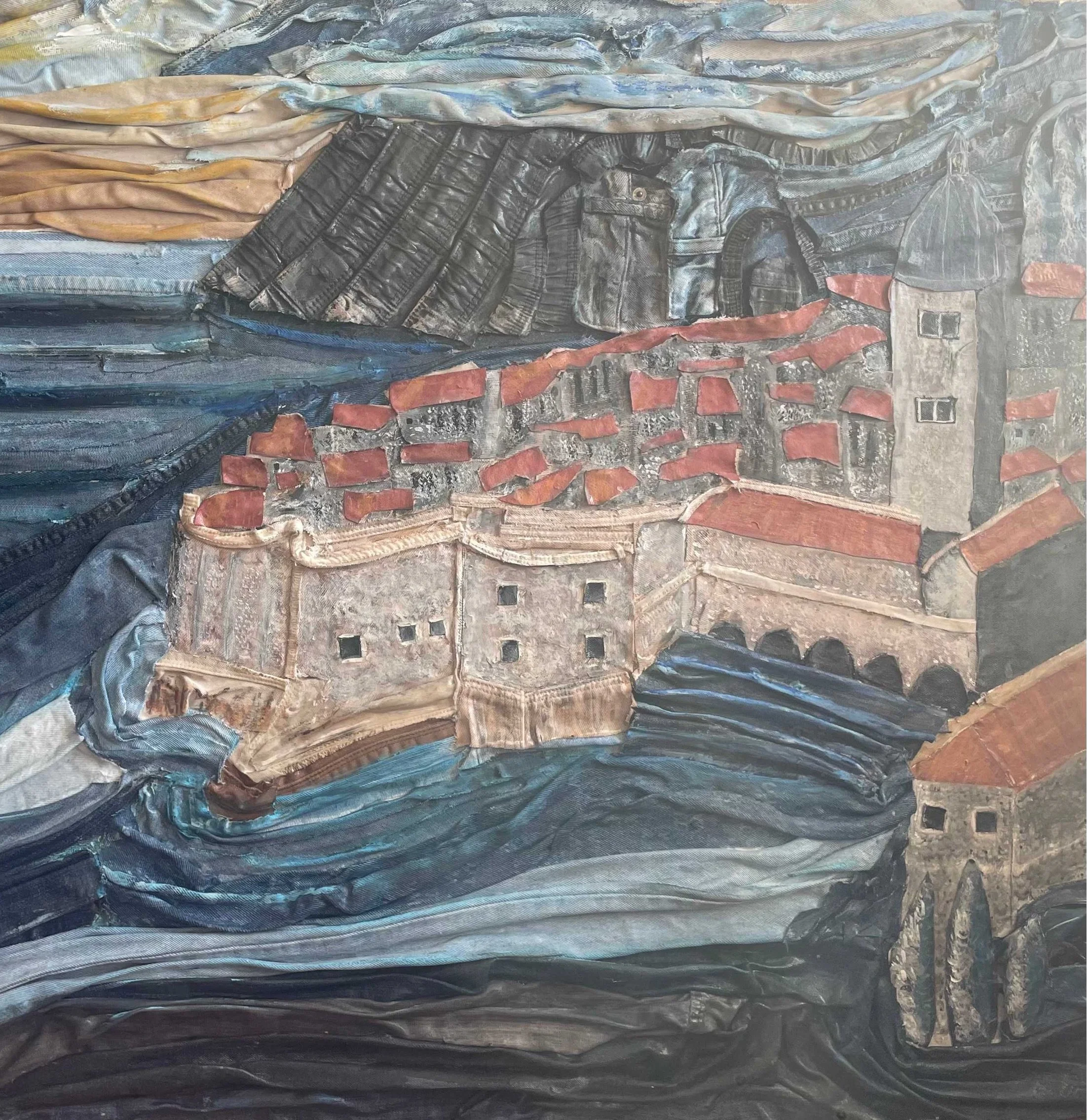 Ragusa 2025, recycled jeans on Canvas, 80 x100 cm