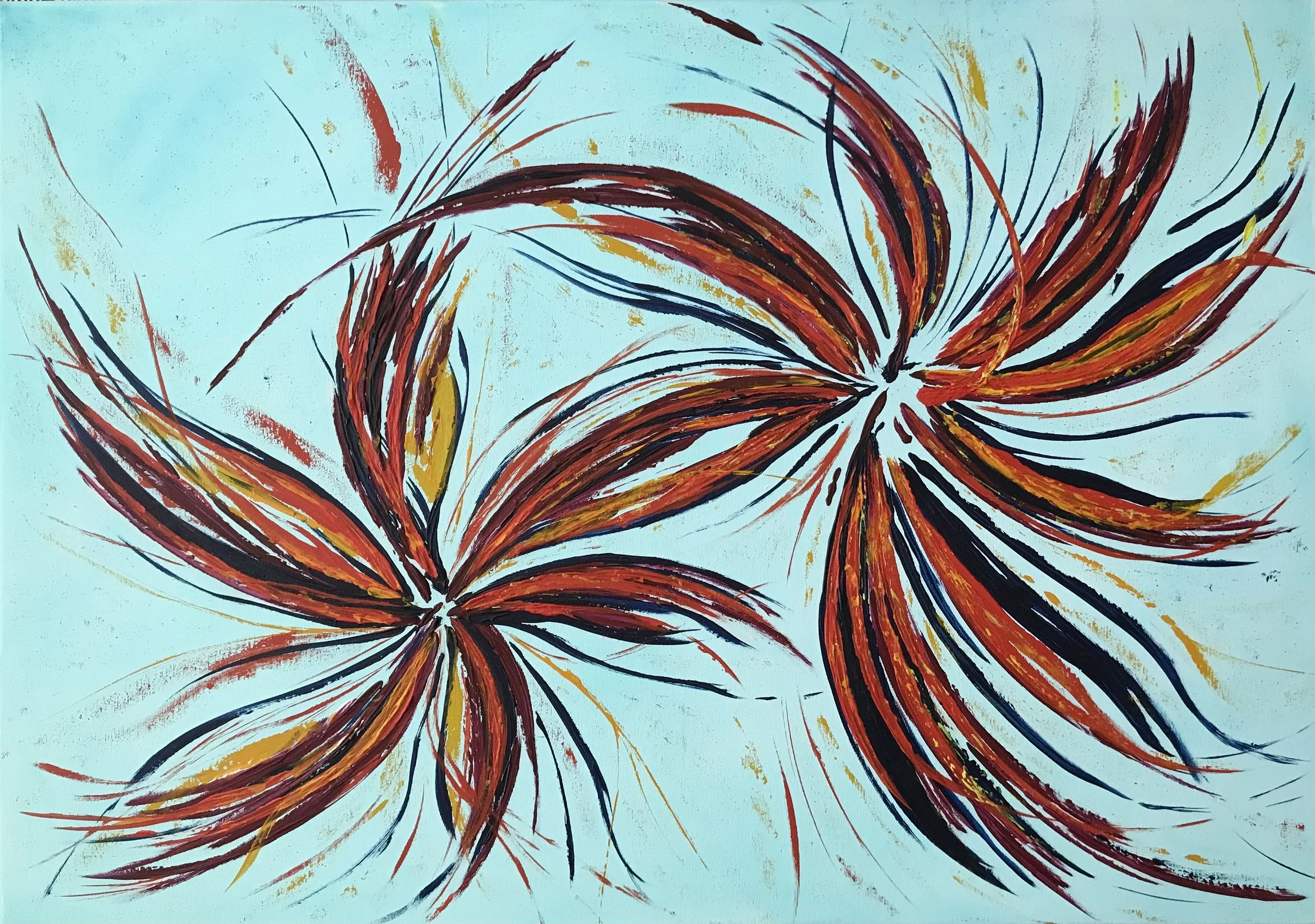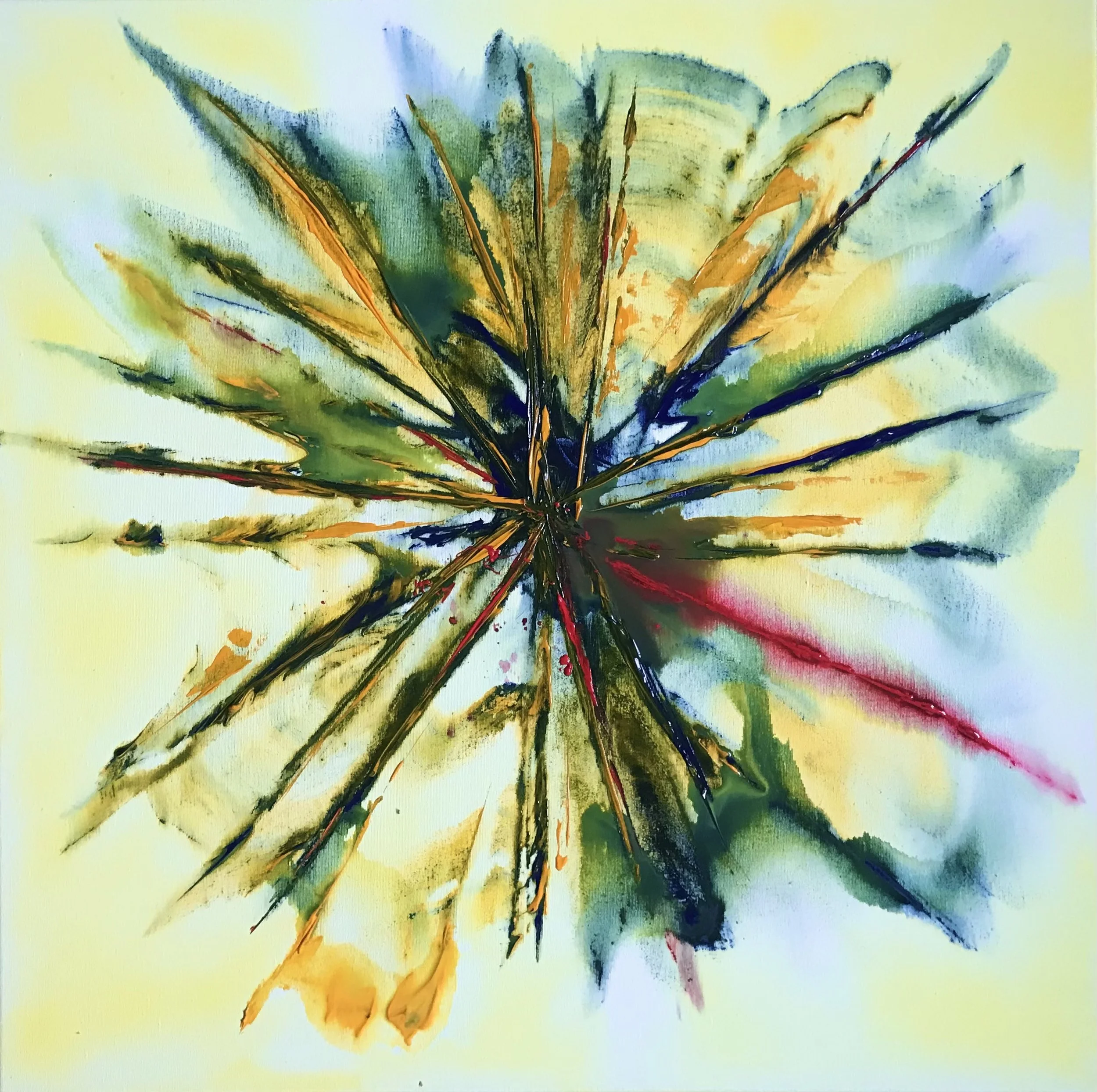 She inserts her immediate mood and feelings into her paintings, which by the composition of shapes and colours, affect the audience and awaken their own creativity. Everyone can find their own visions and ideas because everything is possible in a world of colours, emotions and fantasy.