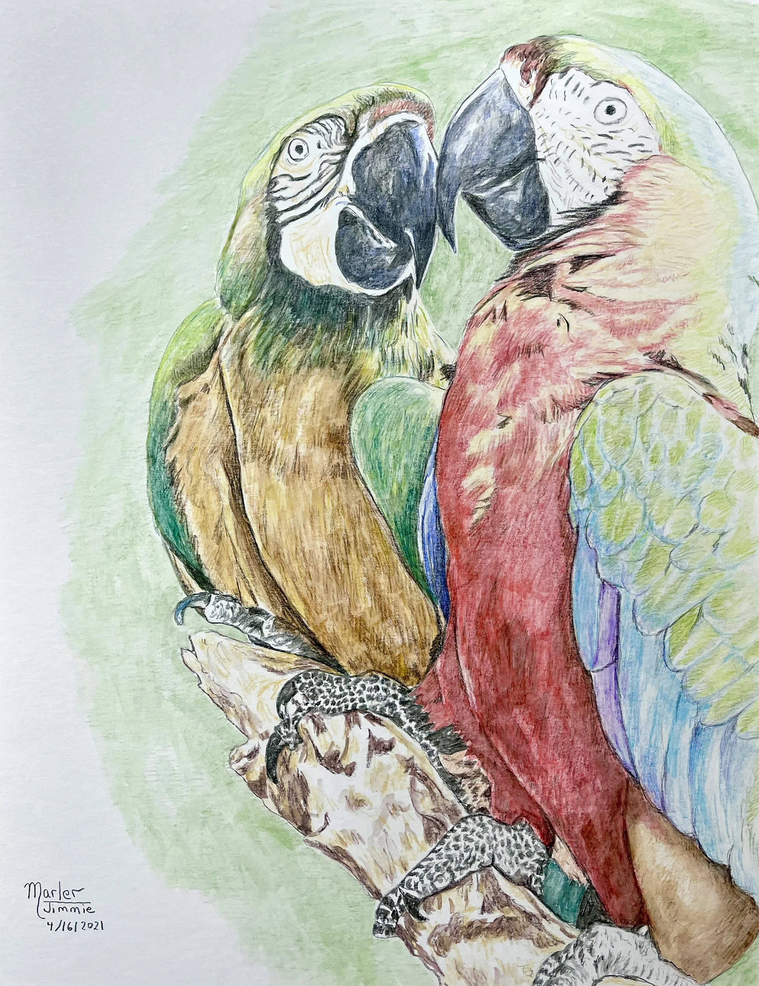 Parakeets, 2021, watercolor, 50x61