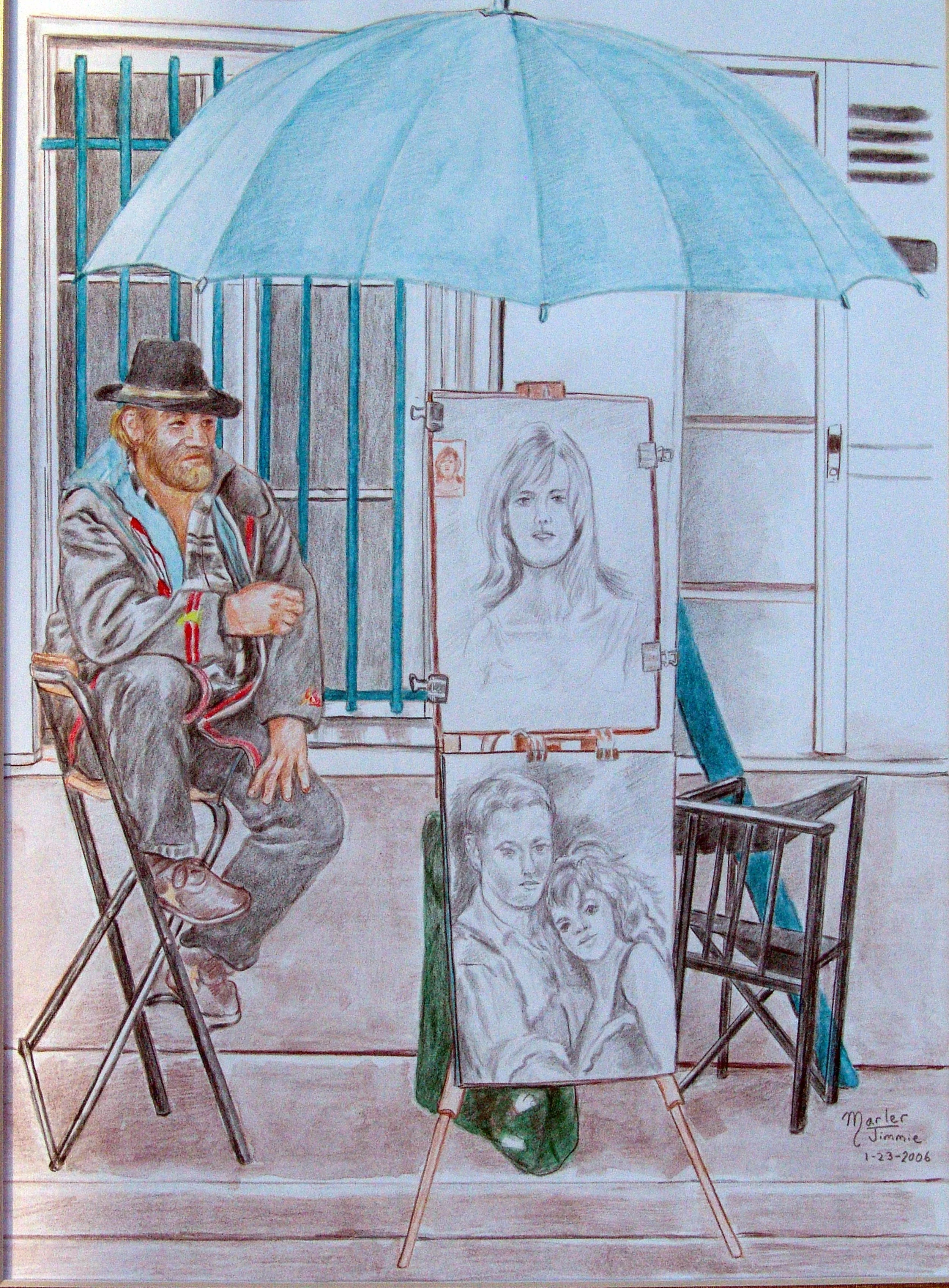 Paris Artist, 2006, watercolor pencils, 40x50 cm