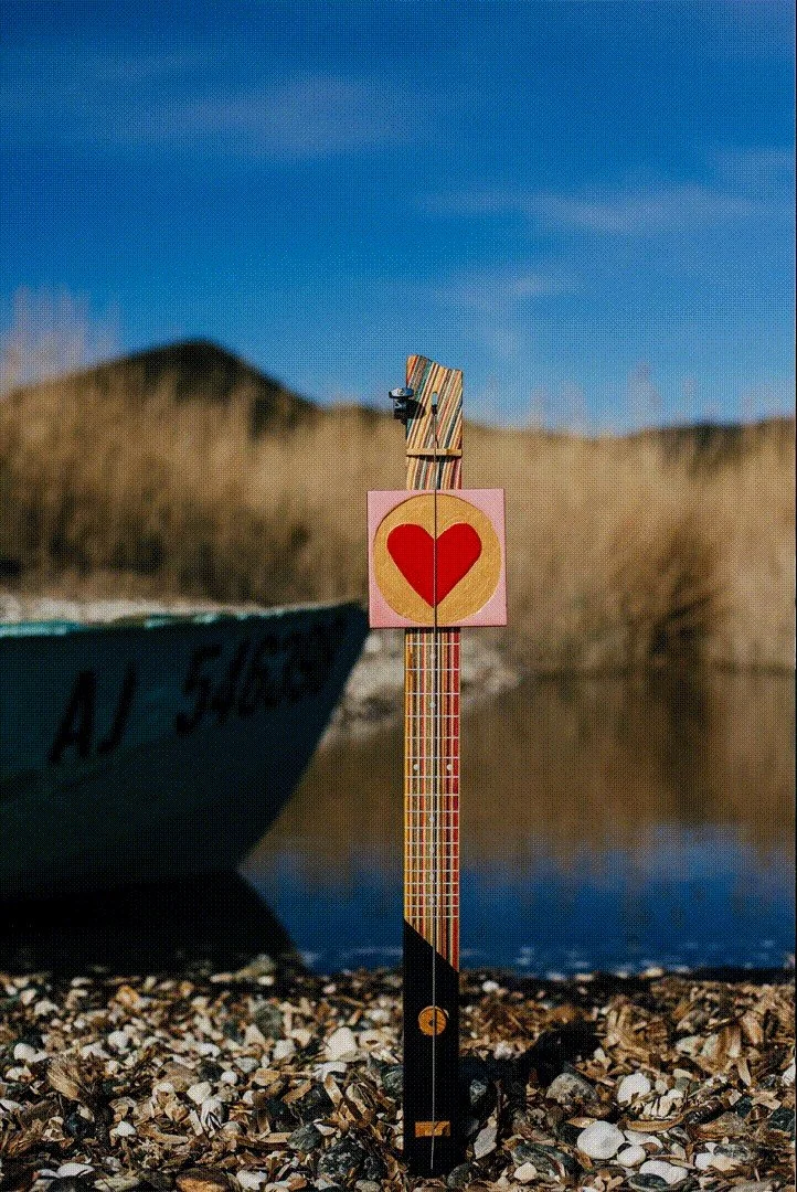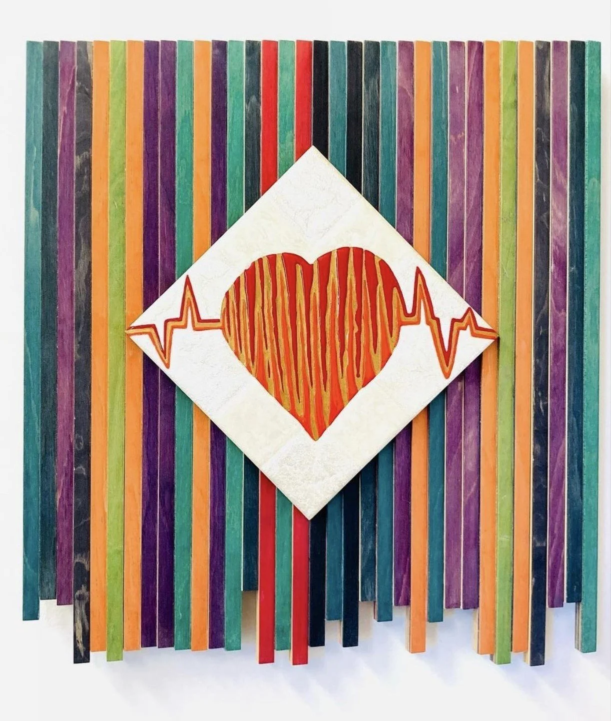 Cardinali’s works celebrate the natural world with a poetic lens, emphasizing brightness and positivity. Her work Infinity Love encapsulates the vitality of the human heart, symbolizing unconditional love and connection. The vibrant red heartbeat etched into the ceramic tile is framed by the warm texture of reworked skateboard wood, grounding the piece in an aesthetic that is contemporary yet timeless. Each work carries an aura of rarity, authenticated by a discreet engraved brass plate inlaid on its reverse—a quiet nod to her attention to detail and craftsmanship.