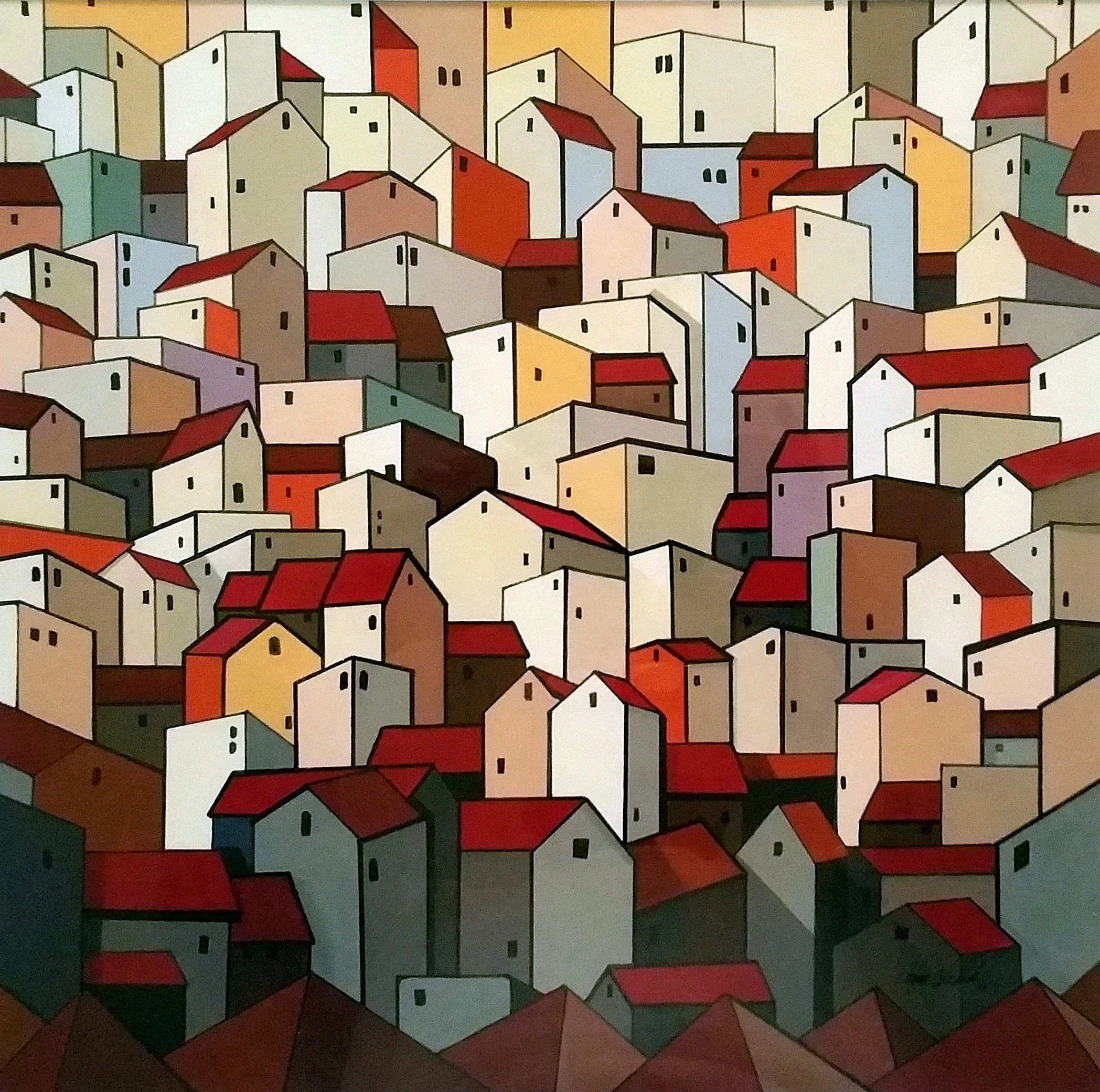 Urban Crowding Series, 2023, Acrylic on Paper matted and framed, 75x75cm,