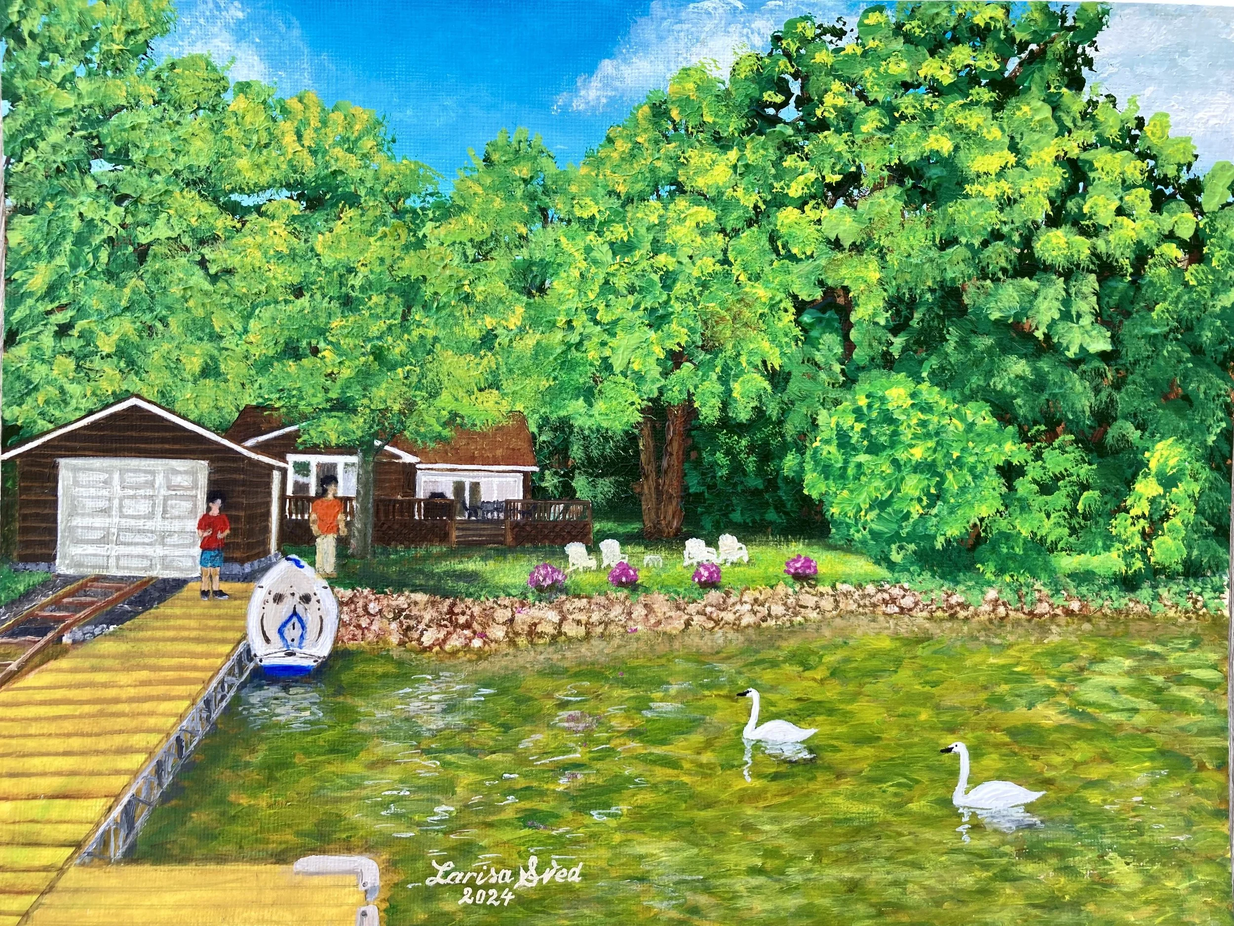 Summer at the Lake, 2024. Acrylic on paper, 22x28cm.