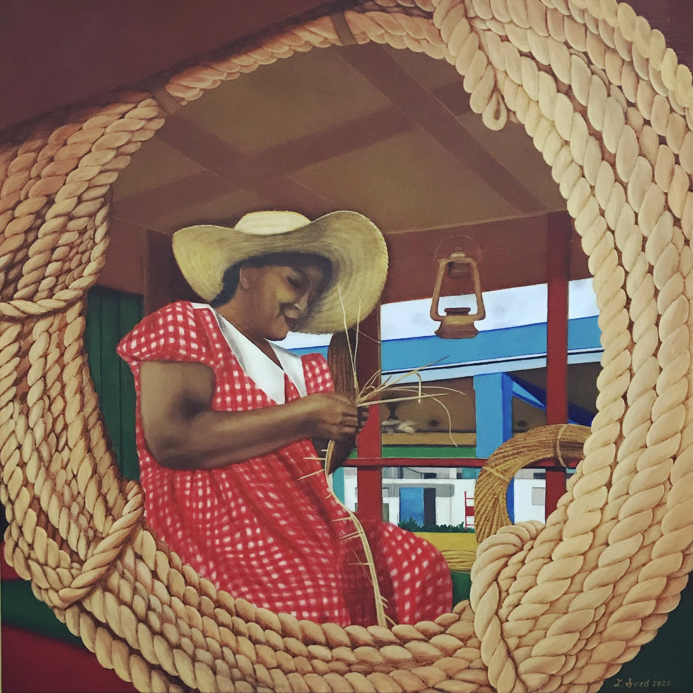 Lady with the Thatch Rope. Cayman Islands’ Heritage; 2020. Acrylic on canvas, 76x76cm.