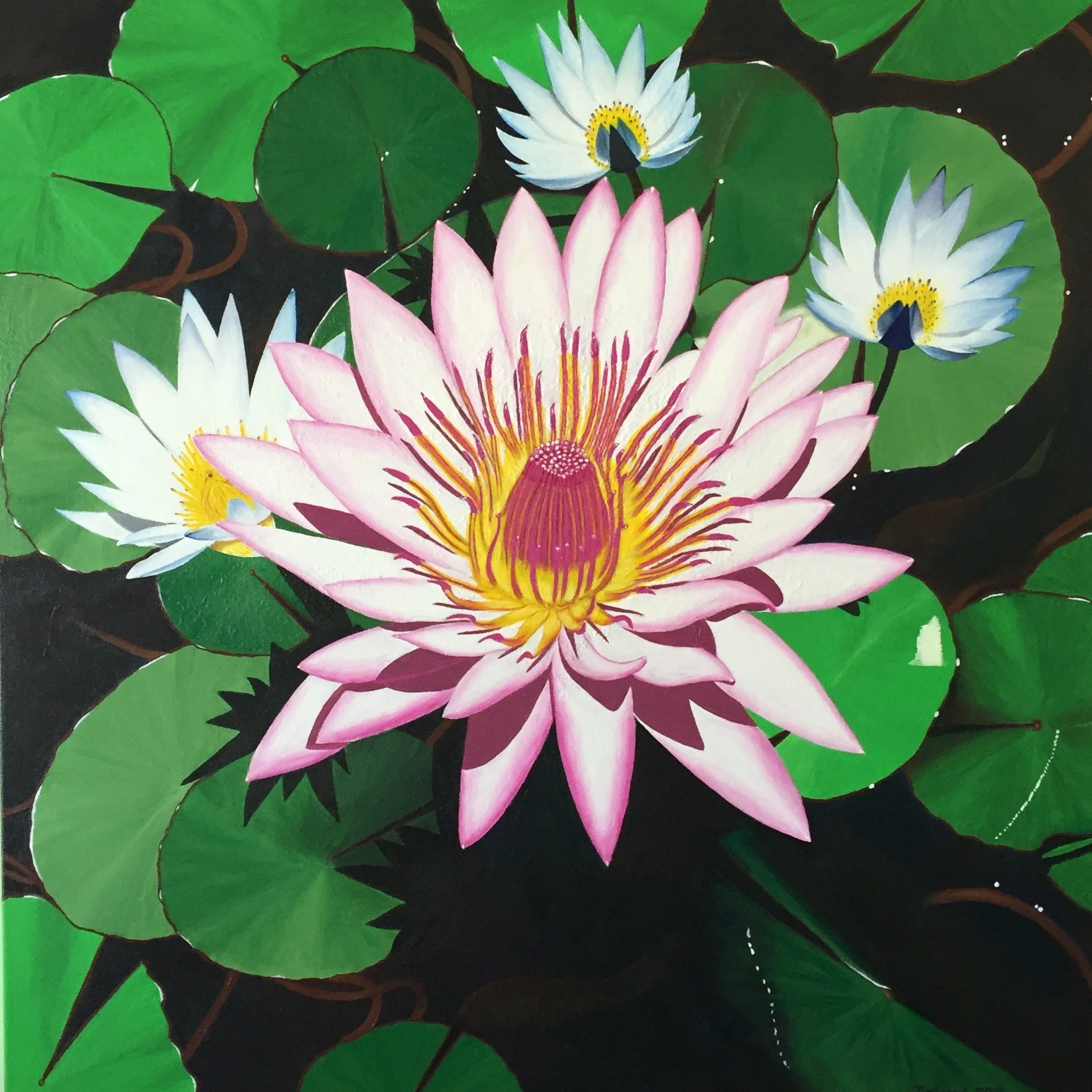 Pink Water Lily. Never Lonely, 2019. Acrylic on canvas, 76x76cm.