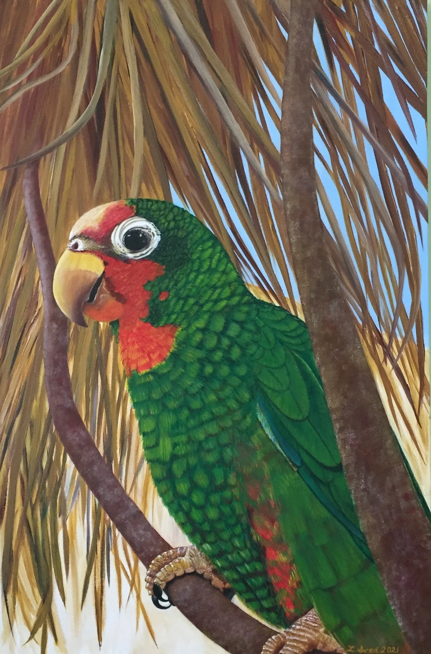 Cayman Parrot, 2021. Acrylic on canvas, 91x61cm.