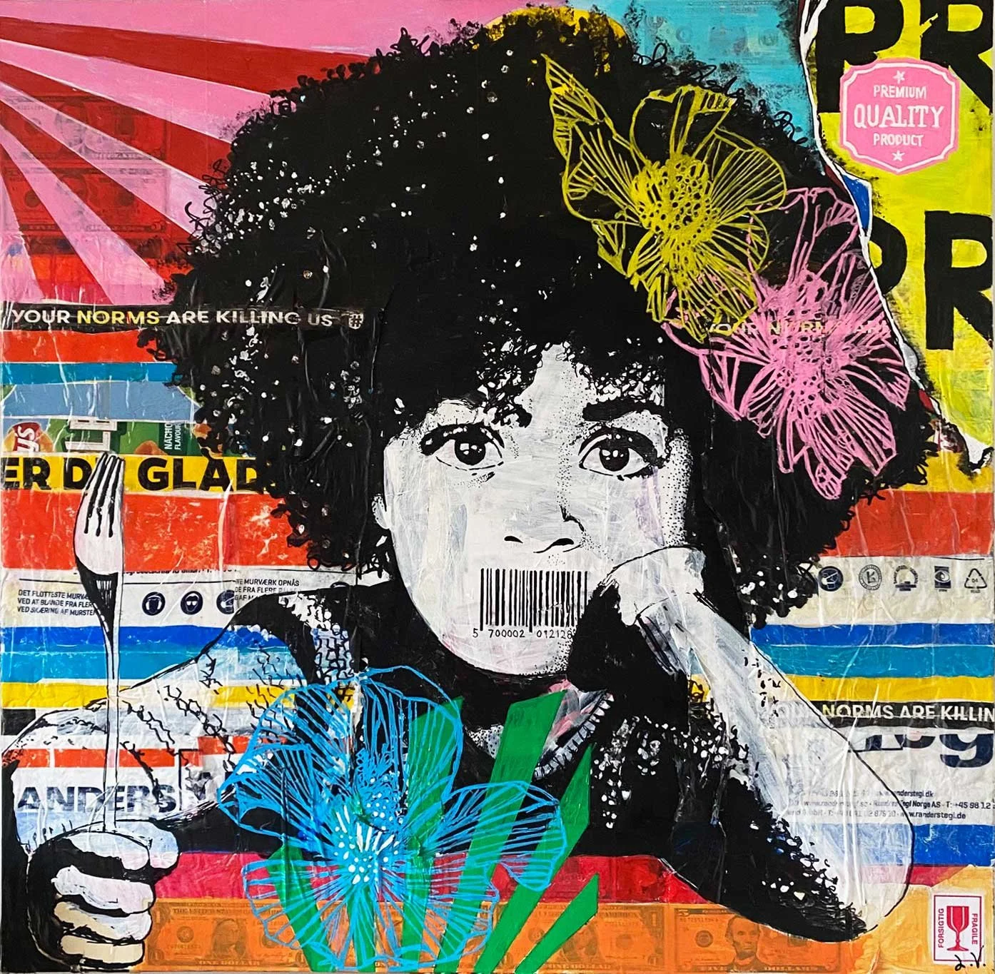 The most important barrier I have overcome is, what other people think. I have become much better at following my intuition without being distracted by other people’s opinions. If anyone has helped me develop this skill I would say a collaboration I had years ago. I was working with a gallery and when I one day came with a painting I was very happy with and also with a very strong political statement, the gallerist said ‘Sorry, but I don’t think I can sell this painting’. Then I knew that I had to make more paintings like that, I just felt right to continue in that direction. Though it sounds funny, it is not the money that drives me, it is the priceless opportunity to freely communicate and share beliefs and thoughts of life.