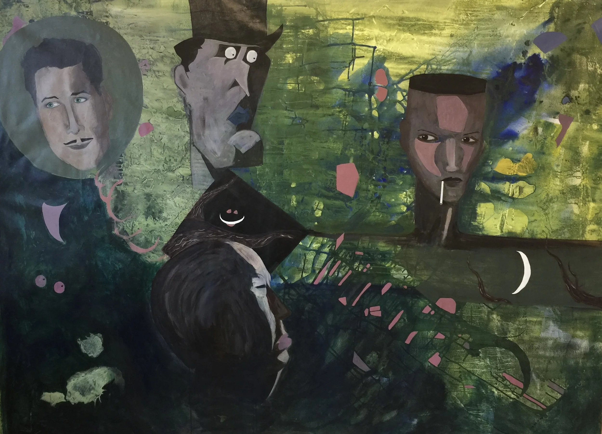 Sir Alfred Hitchcock, Errol Flynn, Edvard Munch, Grace Jones, 2017, acrylic on canvas, 150 x 200 cm